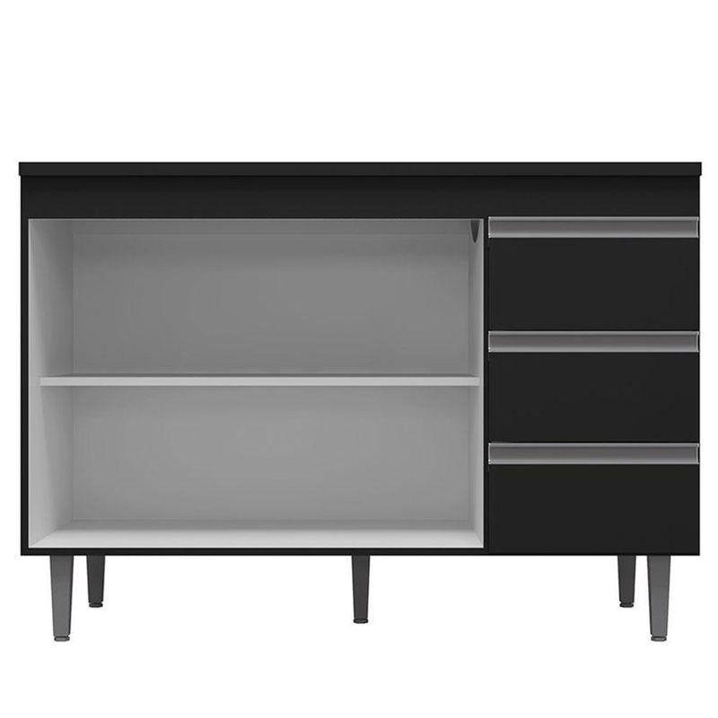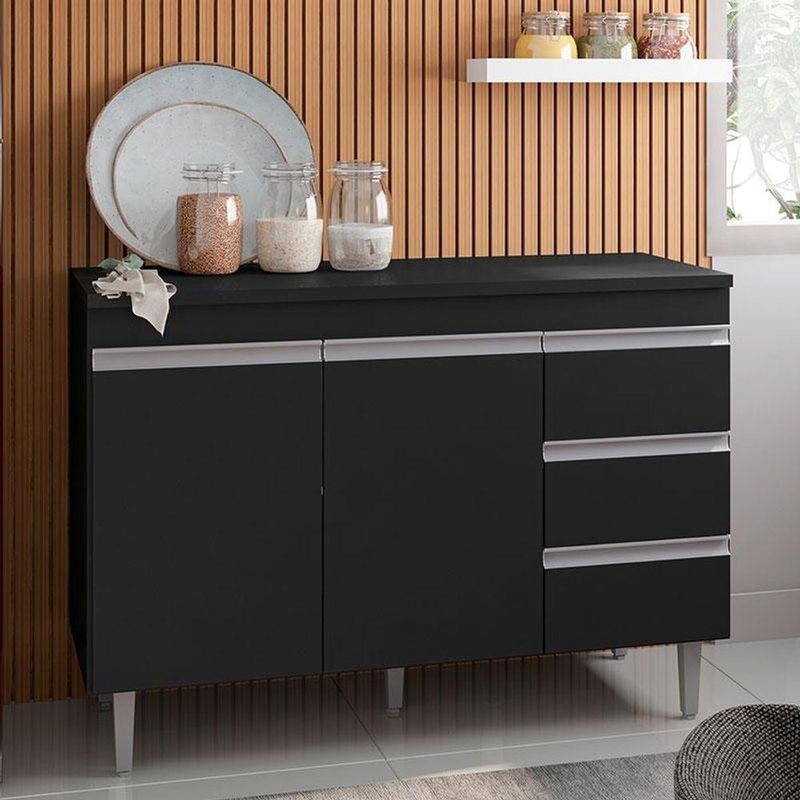 Balcão De Pia Andréia 120 Cm Preto - AjlBalcão de Pia Andréia 120 cm Preto ? AJLChegou a hora de inovar sua cozinha e procura por produtos de qualidade, apresentamos a você o Balcão Andréia desenvolvido pela AJL em um lindo design na cor Preto, conta com amplo espaço interno para melhor organizar seus utensílios proporcionando praticidade no seu dia a dia. Aproveite!Características Técnicas: - Desenvolvido 100% em MDP - Acabamento em pintura U.V na cor Preto - Possui 02 Portas - Dobradiças em Aço - Puxadores embutidos - 03 Gavetas - Corrediças metálicas - Pés em PVC - Lindo design- Não acompanha tampoDimensões: Altura: 80 cm Largura: 116 cm Profundidade: 51 cmObs: Não realizamos a montagem, porém acompanha manual de instruções.