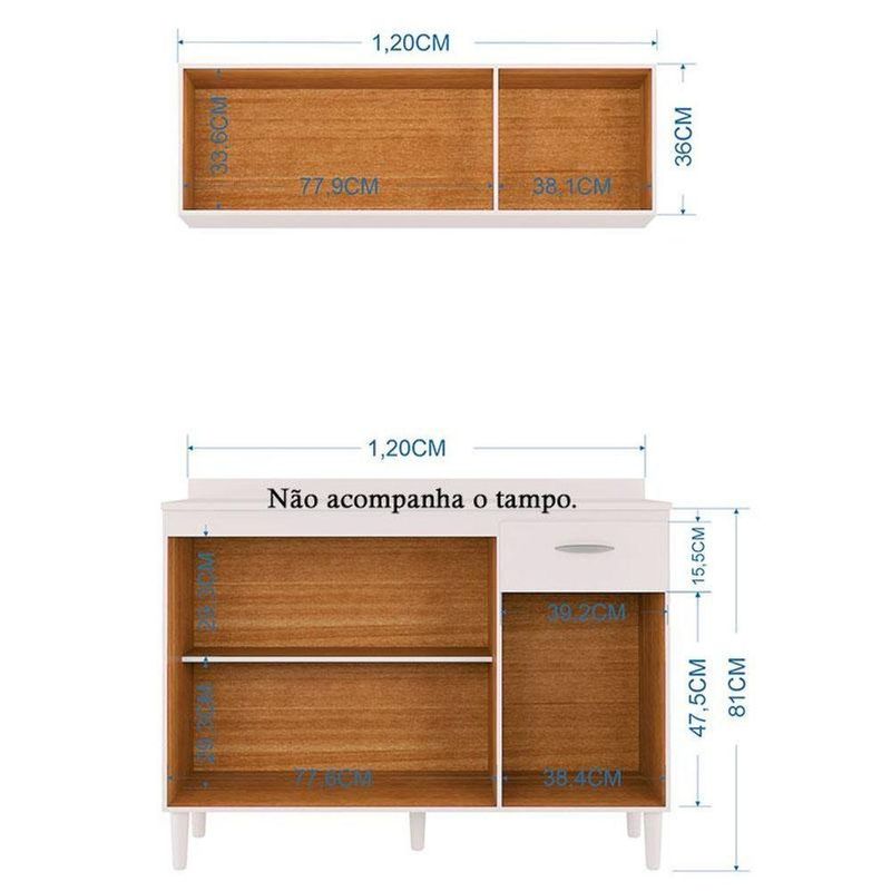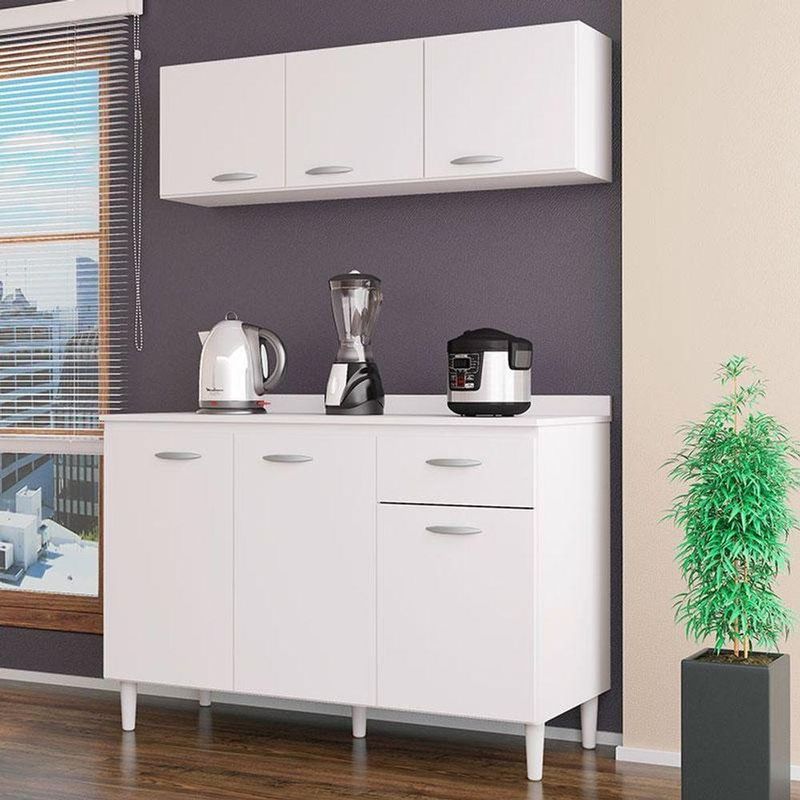 Balcão De Pia E Armário Aéreo 120 Cm Branco Brilho - PoquemaBalcão de Pia e Armário Aéreo 120 cm Branco Brilho - PoquemaProcurando por armários para cozinha, apresentamos a você o Combo desenvolvido pela Poquema, Armário Aereo 3 Portas e Balcão de pia, ideal para ambientes compactos que não possuem muito espaço, lindo design na cor Branco Brilho proporcionando modernidade e um toque especial ao ambiente, possui amplo espaço interno, repartições para melhor organizar seus utensílios, fabricados com materiais de ótimas qualidades. Não deixe de aproveitar, garanta o seu!Armário Aéreo para Cozinha 3 Portas 120 cm Branco Brilho - PoquemaCaracterísticas Técnicas: - Desenvolvido 100% em MDP - Acabamento em pintura U.V na cor Branco Brilho - Possui 03 Portas - Dobradiças metálicas - Puxadores de Plástico Prata Fosco - Amplo espaço interno - Lindo designDimensões: Altura: 36 cm Largura: 120 cm Profundidade: 26 cmBalcão de Pia 120 cm Branco Brilho - PoquemaCaracterísticas Técnicas: - Desenvolvido 100% em MDP - Acabamento em pintura U.V na cor Branco Brilho - Possui 03 Portas - Dobradiças metálicas - 01 Gaveta - Corrediças metálicas - Puxadores de Plástico Prata Fosco - Kit 05 pés plástico Branco - Amplo espaço interno - Lindo design - Não acompanha tampoDimensões: Altura: 81 cm Largura: 120 cm Profundidade: 52 cmObs: Não realizamos a montagem, porém acompanha manual de instruções.