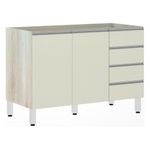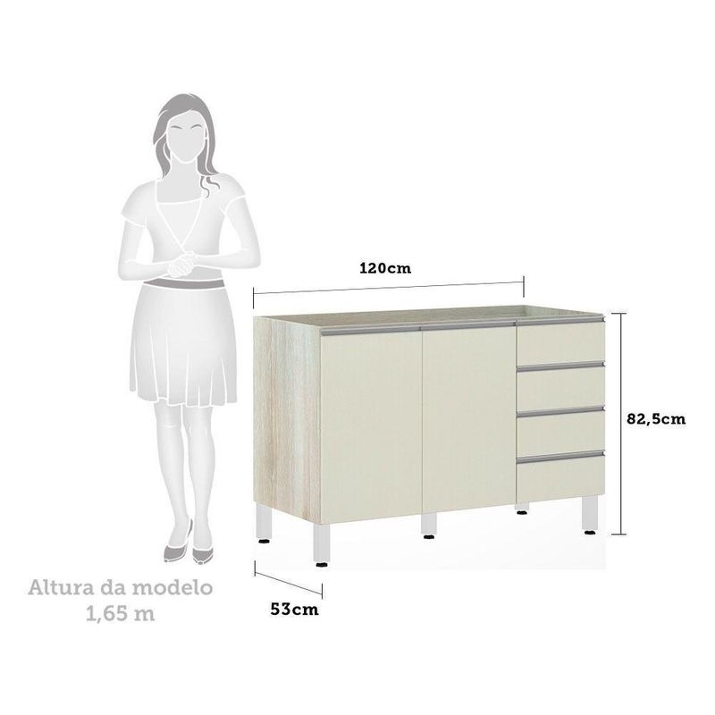 Balcão De Pia Sem Tampo Para Cozinha 120cm 2 Portas E 4 Gavetas Lis Luciane Móveis Legno Crema Com KashmirBalcão Luciane Lis perfeito para sua cozinha. Características: Corpo/Caixaria: MDP Legno Crema FF. Frontais: MDP - BP. Dobradiças: Ø35mm. Corrediças Telescópicas: Abertura Total das Gavetas. Puxadores: Alumínio Gola - Prata. Pés: P S - Cromado. Prateleiras: 1 Portas: 2 Gavetas: 4 Itens inclusos: Manual de montagem, ferragens e acessórios. Montagem com cavilhas e parafusos. Dimensões do produto: Altura: 82,5 cm Largura: 120 cm Profundidade: 53 cm Peso: 38,7 kg Garantia de 3 meses direto do fabricante. Informações complementares: Fique de olho: siga sempre as orientações do fabricante e utilize seu produto de acordo com o manual. A empresa não se responsabiliza pelo mau uso do produto, o que pode causar perda da garantia.#8239; Certifique se que seus dados estejam atualizados, como endereço e um telefone válido. A entrega será realizada no térreo, sendo assim em prédios o deslocamento da mercadoria, subir escadas, elevadores ou transporte por guincho para apartamentos fica sob responsabilidade do comprador. Todas as nossas entregas são realizadas em horário comercial, não sendo possível fazer agendamento, sugerimos acompanhar o rastreio do pedido e ter alguém para receber no endereço indicado. Não nos encarregamos por montagens, desmontagens e outras instalações, serão de responsabilidade do comprador.