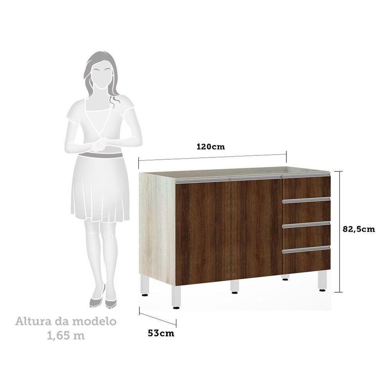 Balcão De Pia Sem Tampo Para Cozinha 120cm 2 Portas E 4 Gavetas Lis Luciane Móveis Legno Crema Com Nogueira DouradoBalcão Luciane Lis perfeito para sua cozinha. Características: Corpo/Caixaria: MDP Legno Crema FF. Frontais: MDP - BP. Dobradiças: Ø35mm. Corrediças Telescópicas: Abertura Total das Gavetas. Puxadores: Alumínio Gola - Prata. Pés: P S - Cromado. Prateleiras: 1 Portas: 2 Gavetas: 4 Itens inclusos: Manual de montagem, ferragens e acessórios. Montagem com cavilhas e parafusos. Dimensões do produto: Altura: 82,5 cm Largura: 120 cm Profundidade: 53 cm Peso: 38,7 kg Garantia de 3 meses direto do fabricante. Informações complementares: Fique de olho: siga sempre as orientações do fabricante e utilize seu produto de acordo com o manual. A empresa não se responsabiliza pelo mau uso do produto, o que pode causar perda da garantia.#8239; Certifique se que seus dados estejam atualizados, como endereço e um telefone válido. A entrega será realizada no térreo, sendo assim em prédios o deslocamento da mercadoria, subir escadas, elevadores ou transporte por guincho para apartamentos fica sob responsabilidade do comprador. Todas as nossas entregas são realizadas em horário comercial, não sendo possível fazer agendamento, sugerimos acompanhar o rastreio do pedido e ter alguém para receber no endereço indicado. Não nos encarregamos por montagens, desmontagens e outras instalações, serão de responsabilidade do comprador.