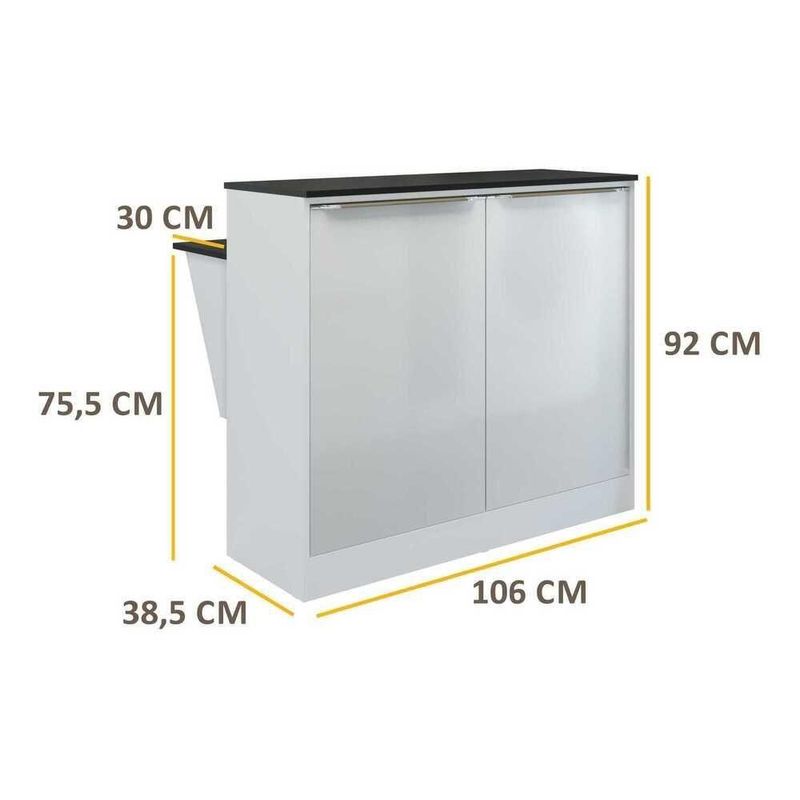 A Bancada Multimóveis foi pensada para quem possui pouco espaço e precisa otimizar seu ambiente. Produzida em MDP com acabamento acetinado (cerca de 20% de brilho), que garante maior durabilidade e resistência, possui duas portas com prateleira interna e um amplo espaço para organizar utensílios e mantimentos. Além de poder utilizar este móvel como bancada, é possível usá-lo também como divisor de ambientes, já que a mesa de apoio pode ser montada como prateleira decorativa. O tampo em BP preto 15mm e os puxadores perfil em alumínio com ponteiras ABS traduzem a modernidade e elegância do design moderno.Conteúdo da Embalagem:1 (um) Balcão/bancadaKit ferragemManual de montagemDimensões do produto montado:Altura: 92cm | Largura: 106cm | Profundidade: 67,5cm*Você pode consultar as medidas detalhadas na imagem técnica do produto.*As cores do produto podem sofrer variações de tonalidade de acordo com as configurações do seu dispositivo.Imagem meramente ilustrativa. Decoração não acompanha o produto.O produto será entregue desmontado e não disponibilizamos o de montagem.