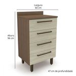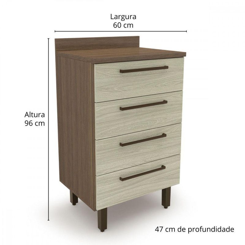 Balcao Evolution Plus 60cm 4 Gavetas Tannat/legno Crema Batrol Tannat/legno CremaTenha em casa os melhores móveis, como o Balcão Evolution Plus da Batrol. Organize sua cozinha com qualidade e elegância! Dimensões: Altura (com pés): 96 cm | Largura: 60 cm | Profundidade: 47 cm Características: Estrutura em MDP de 12 e 15 mm Tampo em MDP de 25 mm Cantoneira estrutural Puxador Less de alumínio de 28 cm 04 Pés reguláveis de plástico de 14 cm cor bronze Pintura Fosco (as duas cores) Corrediças telescópica Suporte de peso 5 kg distribuídos Garantia 12 meses AVISO: Esclarecemos que a Opção Móveis se responsabilizará pela entrega dos produtos adquiridos até a porta de entrada ou portaria do endereço indicado, ou seja: é de total responsabilidade do cliente a montagem, desmontagem e instalação do produto adquirido. Para evitar futuros desagrados ou imprevistos com a entrega, também é necessário que o cliente confira as dimensões do produto escolhido, antes de finalizar a compra, devendo certificar-se de que a mercadoria passará normalmente por elevador, porta, escada e corredor.