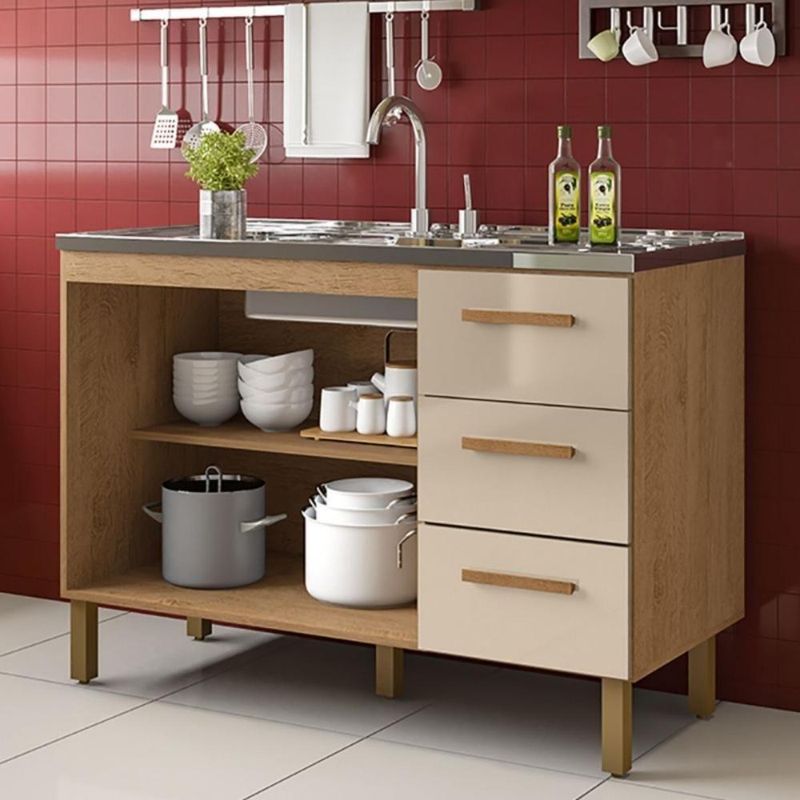 Balcão Fortaleza 3 Gavetas Para Pia 1,20 Mt Amêndoa OffBALCÃO FORTALEZA 3 GAVETAS PARA PIA 1,20 MT Amêndoa OffOlá! Seja bem-vindo(a) à Milani Movelaria, especialista em móveis de qualidade que unem praticidade e design para transformar sua cozinha.Apresentamos o Balcão Fortaleza 3 Gavetas 2 Portas para Pia de 1,20m – o móvel ideal para quem busca organização, resistência e economia de espaço em um só produto.Se a sua cozinha é pequena ou média e você sente falta de espaço para organizar utensílios, panelas e produtos, este balcão é a solução perfeita. Ele foi desenvolvido para oferecer o suporte necessário à pia de 1,20m e ainda manter sua cozinha organizada. O que nossos clientes dizem:“Comprei para meu apartamento e ficou perfeito, as gavetas são muito úteis.”“Material de qualidade, ótimo custo-benefício.”“A cozinha ficou mais organizada sem ocupar muito espaço.” Especificações técnicas do produto:Modelo: Balcão Fortaleza 3 Gavetas 2 Portas para Pia de 1,20mMedidas: 1,18 m de largura x 83 cm altura x 50 cm ProfundidadeEstrutura: MDP 15mm resistenteAcabamento: Pintura UV Amêndoa ( Fosco ) Off White ( Brilho).Pés com regulagem de até 18,5 cmCorrediça TelescópicaCompartimentos: 3 gavetas + 2 portasIndicado para: Pia de 1,20mDesign: Compacto e funcional Conteúdo da embalagem:1 Balcão Fortaleza 3 Gavetas 2 Portas para Pia de 1,20mManual de montagemKit de ferragens Garantia: 3 meses contra defeitos de fabricação – mais segurança para sua compra.Esse balcão é perfeito para quem deseja organizar a cozinha sem abrir mão de um design moderno e funcional. Mas atenção: nossas unidades são limitadas! Garanta já o seu clicando em Comprar agora e transforme sua cozinha com a qualidade Milani Movelaria.Agradecemos sua visita e esperamos fazer parte do seu lar! Requer montagem: Sim | Peso do Produto: 38 | Cor: Amêndoa / Off White | Tonalidade: Marrom Claro | Altura: 83 | Largura: 118 | Acompanha Pia: Não | Acabamento: PiNTURA UV | Marca: Milani Movelaria | Fabricante: Milani Movelaria | Tipo de móveis de cozinha: Balcão | Profundidade: 50 | Materiais do corpo: MDP 15MM | Modelo: BALCÃO FORTALEZA 3 GAVETAS PARA PIA 1,20 MT Amêndoa Off | Inclui manual de montagem: Sim | Quantidade de caixas de embalagem: 1