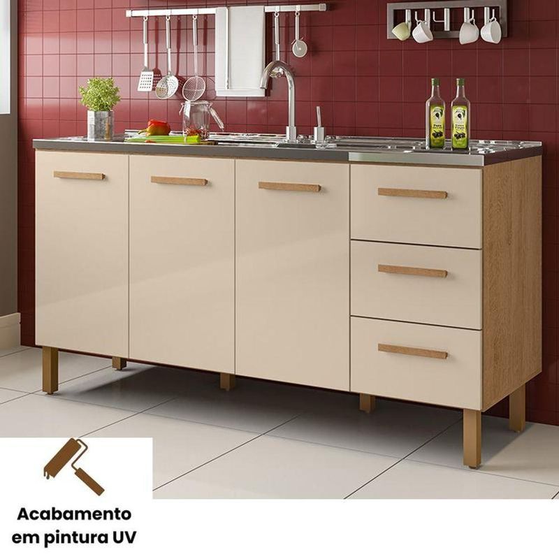 Balcão Fortaleza 3 Gavetas Para Pia 1,60 Mt Amêndoa OffBALCÃO FORTALEZA 3 GAVETAS PARA PIA 1,60 MT Amêndoa OffOlá! Seja bem-vindo(a) à Milani Movelaria, especialista em móveis de qualidade que unem praticidade e design para transformar sua cozinha.Apresentamos o Balcão Fortaleza 3 Gavetas 3 Portas para Pia de 1,60m – o móvel ideal para quem busca organização, resistência e economia de espaço em um só produto.Se a sua cozinha é pequena ou média e você sente falta de espaço para organizar utensílios, panelas e produtos, este balcão é a solução perfeita. Ele foi desenvolvido para oferecer o suporte necessário à pia de 1,60m e ainda manter sua cozinha organizada. O que nossos clientes dizem:“Comprei para meu apartamento e ficou perfeito, as gavetas são muito úteis.”“Material de qualidade, ótimo custo-benefício.”“A cozinha ficou mais organizada sem ocupar muito espaço.” Especificações técnicas do produto:Modelo: Balcão Fortaleza 3 Gavetas 3 Portas para Pia de 1,60mMedidas: 1,57 m de largura x 83 cm altura x 50 cm ProfundidadeEstrutura: MDP 15mm resistenteAcabamento: Pintura UV Amêndoa ( Fosco ) Off White ( Brilho).Pés com regulagem de até 18,5 cmCorrediça TelescópicaCompartimentos: 3 gavetas + 3 portasIndicado para: Pia de 1,60mDesign: Compacto e funcional Conteúdo da embalagem:1 Balcão Fortaleza 3 Gavetas 3 Portas para Pia de 1,60mManual de montagemKit de ferragens Garantia: 3 meses contra defeitos de fabricação – mais segurança para sua compra.Recomendamos que a limpeza seja efetuada com pano seco e ou levemente umedecido. Não aplicar produtos químicos.***Este produto não acompanha Tampo ou Cuba para Pia.* Foto Ilustrativa. Não acompanhando objetos de enfeites e eletros;Ao receber o produto verifique as condições da embalagem, em caso de avaria entre em contato conosco para orientações;Confira as dimensões do produto e certifique-se de que passarão normalmente por supostos elevadores, portas, escadas ou corredores de sua moradia;Entregamos os produtos na área urbana até a frente de sua moradia, ou seja, até sua porta se for casa ou portaria se for apartamento.A Loja não disponibiliza o serviço de montagem, a montagem é de total responsabilidade do comprador.Recomendamos que a montagem seja feita por um profissional da área.Esse balcão é perfeito para quem deseja organizar a cozinha sem abrir mão de um design moderno e funcional. Mas atenção: nossas unidades são limitadas! Garanta já o seu clicando em Comprar agora e transforme sua cozinha com a qualidade Milani Movelaria.Agradecemos sua visita e esperamos fazer parte do seu lar! Requer montagem: Sim | Peso do Produto: 42 | Cor: Amêndoa / Off White | Tonalidade: Marrom Claro | Altura: 83 | Largura: 157 | Acompanha Pia: Não | Acabamento: PiNTURA UV | Marca: Milani Movelaria | Fabricante: Milani Movelaria | Tipo de móveis de cozinha: Balcão | Profundidade: 50 | Materiais do corpo: MDP 15MM | Modelo: BALCÃO FORTALEZA 3 GAVETAS PARA PIA 1,60 MT Amêndoa Off | Inclui manual de montagem: Sim | Quantidade de caixas de embalagem: 1