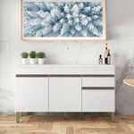 Balcão Gabinete De Cozinha 3 Portas 1 Gaveta Com Tampo 1,50m Line Kit's Paraná Madeirado BrancoO Balcão Line é uma solução de armazenamento elegante e funcional, projetada para otimizar a organização da cozinha. Com três portas e prateleiras internas, oferece um espaço amplo e personalizável para armazenar itens de forma eficiente. A gaveta com corrediça telescópica 100% é um destaque, permitindo uma abertura ampla e um deslizamento suave, facilitando o acesso aos itens armazenados. Além disso, os pés reguláveis garantem estabilidade e ajuste perfeito ao piso. Com aplicação de textura sensível ao toque e acabamento de pintura com secagem em luzes UV, o Balcão Line apresenta um acabamento de alta qualidade e durabilidade, tornando-se uma peça fundamental para uma cozinha moderna e sofisticada.MEDIDAS:[ A ] = 86 cm[ L ] = 150 cm[ P ] = 53,3 cmALTURA DOS PÉS: 17 cmPESO: 47,60 kgPESO SUPORTADO: 55 kgPRATELEIRAS SUPORTAM ATÉ: 10 kgGAVETA SUPORTA ATÉ: 10 kgTAMPO SUPORTA ATÉ: 15 kgMODELO: Balcão de Cozinha 3 Portas 1 Gaveta com Tampo 1,50m LineMARCA: Kit's ParanáACABAMENTO: Acabamento em pintura com secagem em luzes UVMATERIAL DA ESTRUTURA: MDPESPESSURA DO MATERIAL: 15mmPORTAS: 3TIPO DE PORTA: BaterDOBRADIÇAS: MetálicasPRATELEIRAS: 1GAVETAS: 1CORREDIÇAS: TelescópicasPOSSUI TAMPO: SimMATERIAL DO TAMPO: MDPMATERIAL DOS PUXADORES: AlumínioQUANTIDADE DE PUXADORES: 4PÉS: 5TIPO DE PÉS: ReguláveisMATERIAL DOS PÉS: PlásticoDIFERENCIAL: Corrediças telescópicas e pés reguláveis.ITENS INCLUSOS: 1 Balcão de Cozinha, 1 Manual de Montagem, 1 Kit ParafusosGARANTIA: 3 MesesA Esplanada Móveis se responsabiliza pela entrega dos produtos adquiridos até a porta de entrada ou portaria do endereço indicado, se a portaria do condomínio permitir, as entregas são efetuadas no piso térreo e é de responsabilidade do cliente a locomoção da mercadoria até seu apartamento ou casa.Confira as dimensões do produto e certifique-se de que estão adequadas aos elevadores, portas e corredores do local da entrega. Não fazemos a montagem, desmontagem do produto e/ou portas e janelas, transporte pela escada ou içamento pelo lado de fora do prédio. Não está incluso no serviço de entrega o deslocamento até o interior do apartamento, com ou sem elevador, ou deslocamento em locais de difícil acesso como escadarias.Caso o cliente necessite de entrega dentro das dificuldades mencionadas, deverá entrar em contato para análise e cotação do valor do serviço.