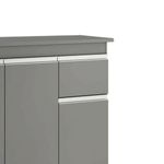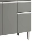 Balcão Gabinete De Pia Para Cozinha Sem Tampo 100cm Tatiane Cinza- Mabe Magazine Balcão de Pia SEM TAMPO Tatiane 100cm - MABE MAGAZINEO Balcão de Pia Tatiane é uma peça que combina funcionalidade e estilo, tornando-se um elememto essencial para sua cozinha. Com uma estrutura em MDP, ela garante durabilidade e resistência.Além trazer um ar de sofisticação ao ambiente,elevando a decoração do seu espaço. Sua Variedade de cores permite que se adapte a diferentes estilos,agregando charme e personalidade ao seu ambiente. Sem dúvidas, é uma escolha que une beleza,praticidade e conforto.Caracteristicas:- Largura: 98 cm;- Altura: 80 cm;- Profundidade: 51 cm;- Fabricado em MDP com Pintura UV;- Pés de Plastico;Observações:- Limpar com flanela limpa e seca. Não molhar o movél e não expor em lugar úmido ou proximo de fontes de calor. Não usar produtos abrasivos;- As imagens ambientadas são meramente ilustrativas e podem apresentar itens que não compoê o produto;- Objetos decorativos que aparecem na foto não acompanham o produto;- As cores do produto podem variar de acordo com o monitor, a iluminação do ambiente, ou sua percepção visual;- Confira as dimensões antes da compra e certifique-se de que o produto passará por elevadores, portas e corredores, já¡ que nossa entrega não inclui a subida de lances de escada, ou o issamento de produtos;- Produto para uso residencial em ambiente interno, não devendo ficar exposto diretamente ao sol, calor e umidades excessivas.