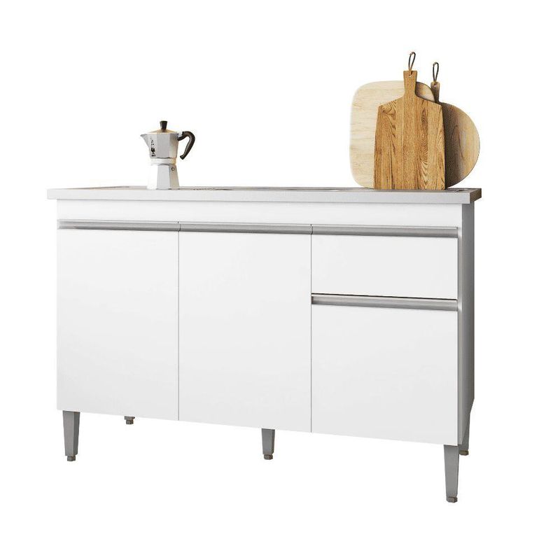 Balcão Gabinete De Pia Para Cozinha Sem Tampo 120cm Tatiane Branco- Mabe Magazine Balcão de Pia SEM TAMPO Tatiane 120cm - MABE MAGAZINEO Balcão de Pia Tatiane é uma peça que combina funcionalidade e estilo, tornando-se um elememto essencial para sua cozinha. Com uma estrutura em MDP, ela garante durabilidade e resistência.Além trazer um ar de sofisticação ao ambiente,elevando a decoração do seu espaço. Sua Variedade de cores permite que se adapte a diferentes estilos,agregando charme e personalidade ao seu ambiente. Sem dúvidas, é uma escolha que une beleza,praticidade e conforto.Caracteristicas:- Largura: 118 cm;- Altura: 80 cm;- Profundidade: 51 cm;- Fabricado em MDP com Pintura UV;- Pés de Plastico;Observações:- Limpar com flanela limpa e seca. Não molhar o movél e não expor em lugar úmido ou proximo de fontes de calor. Não usar produtos abrasivos;- As imagens ambientadas são meramente ilustrativas e podem apresentar itens que não compoê o produto;- Objetos decorativos que aparecem na foto não acompanham o produto;- As cores do produto podem variar de acordo com o monitor, a iluminação do ambiente, ou sua percepção visual;- Confira as dimensões antes da compra e certifique-se de que o produto passará por elevadores, portas e corredores, já¡ que nossa entrega não inclui a subida de lances de escada, ou o issamento de produtos;- Produto para uso residencial em ambiente interno, não devendo ficar exposto diretamente ao sol, calor e umidades excessivas.