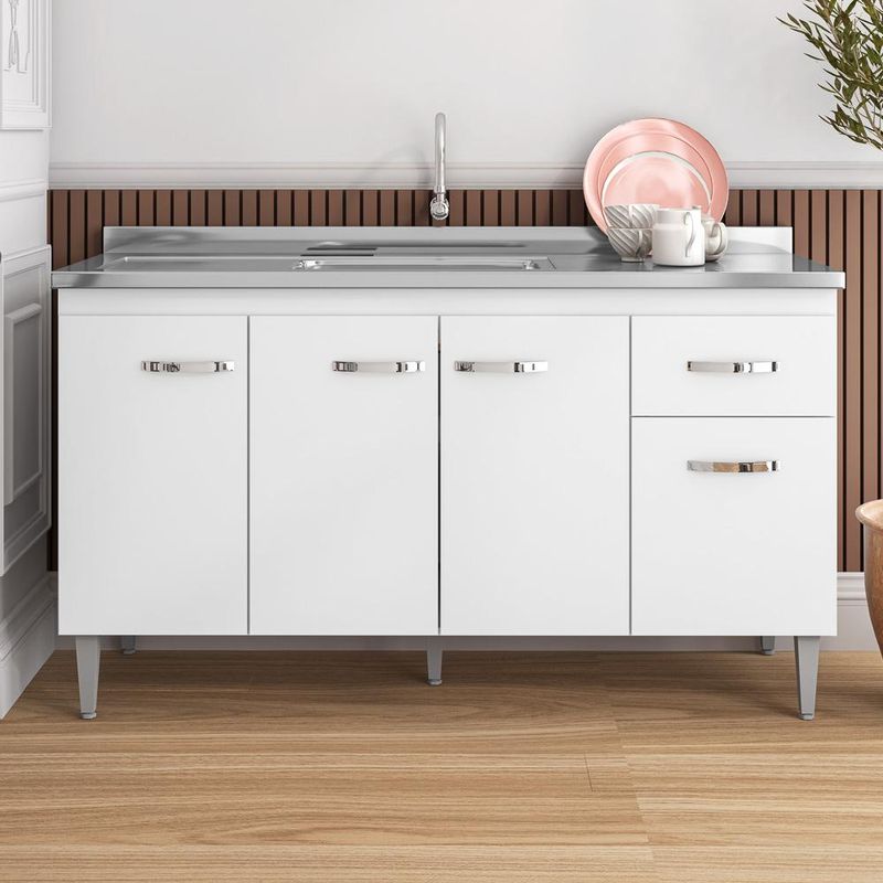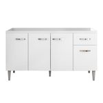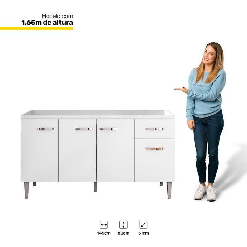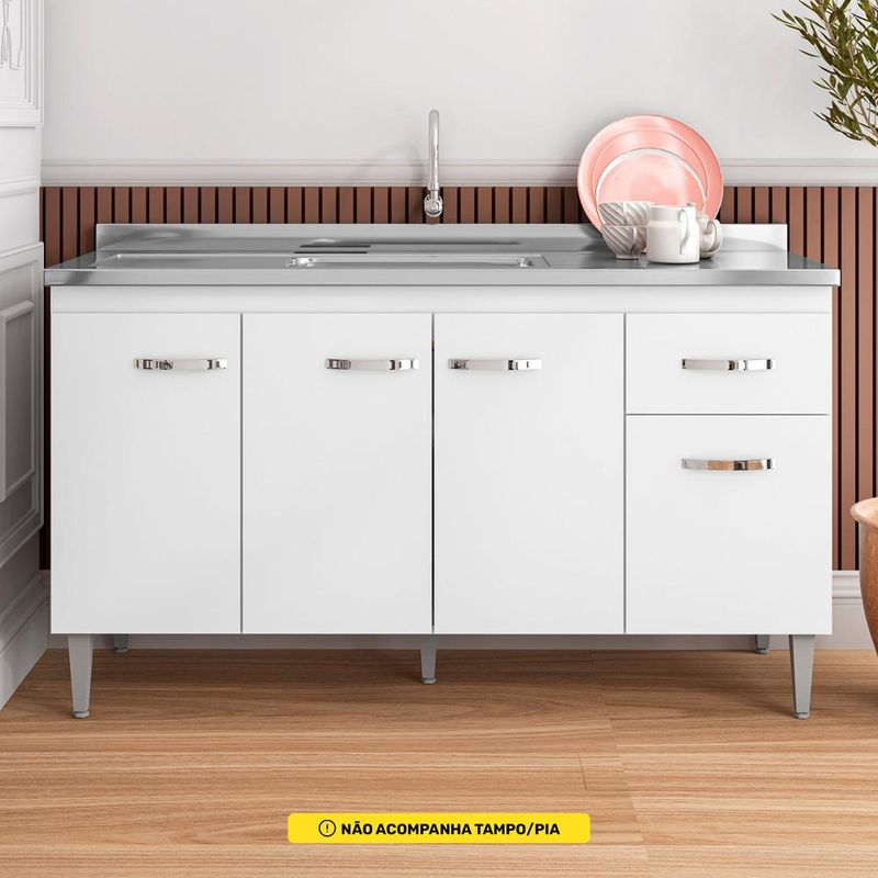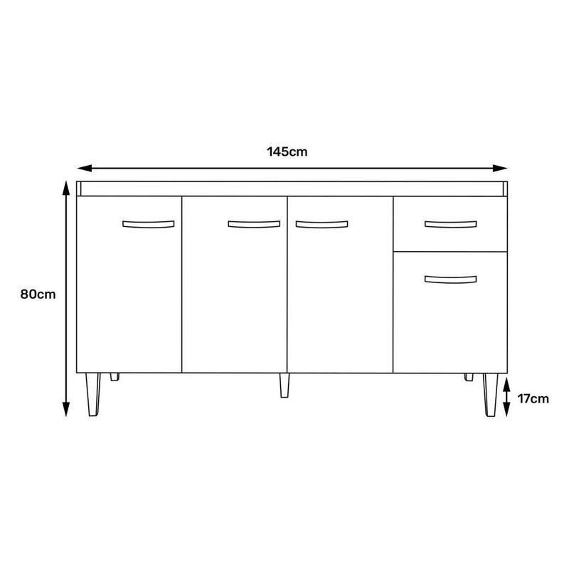 Que tal o Balcão Gabinete Gabriela de Pia 150cm Sem Tampo 4 Portas? Renove sua cozinha com quem entende. O Balcão Gabriela da AJL é a opção certa para você que procura qualidade e beleza em um só produto. Com este gabinete seu ambiente ficará completo e elegante do jeitinho que você sempre sonhou. Produzido em MDP, o balcão possui acabamento em UV, que garante beleza e muito mais durabilidade ao produto. Além disso possui 4 portas com dobradiças resistentes, 1 gaveta Flex (Branco ou Preto) com corrediças metálicas e puxadores de plástico, não é demais? Sua cozinha merece o melhor! Qualidade e tradição que só a AJL tem. Compre já! Dimensão do Produto Montado: Largura: 145 cm Altura: 80 cm Profundidade: 51 cm Peso Aproximado: 32 kg ATENÇÃO: NÃO ACOMPANHA PIA/TAMPO Características: Material da Estrutura: MDP 12 e 15mm Material da Fundo: MDF Peso Suportado: 30 kg distribuídos Acabamento: Pintura UV Escala de Brilho: Brilho Possui Portas: Sim Quantidade de Portas: 4 portas Material das Portas: MDP Tipo de Porta: De bater Tipo de Puxador: Plástico Possui Gavetas: Sim Quantidade de Gavetas: 1 gaveta Possui Prateleiras: Sim Quantidade de prateleiras: 1 Prateleira Material da Prateleira: MDP Possui Pés: Sim Tipo de Pés: Plástico com regulagem de altura. Possui Tampo: Não Ambiente Principal: Cozinha Sistema de Montagem: Parafusos, Cavilhas e outros Possui Manual de Montagem: Sim Diferenciais: - Design Moderno - Estrutura em MDP - Gaveta com Opção FLEX - Pés com Regulagem de Altura - Amplo Espaço Interno Itens Inclusos: - 1 Balcão Gabinete, manual e acessórios de montagem. Montagem: - Complexidade da Montagem: Media. - Recomendamos que seja feita por um profissional qualificado. - Produto enviado desmontado. Limpeza e cuidados: Utilizar pano levemente umedecido com água, seguido de pano seco. Não utilizar produtos químicos ou abrasivos na limpeza. Evitar contato com objetos cortantes. Manter ao abrigo de local interno, sem ficar exposto diretamente ao sol, calor e umidade excessivo. Importante: - Pode haver ligeira diferença de tonalidade entre a imagem digital e o produto real por conta do tratamento de imagens e a calibração de cores do seu monitor. - As imagens são meramente ilustrativas, não acompanham objetos de decoração e eletrônicos. - Produto para uso residencial em ambiente interno, não devendo ficar exposto diretamente ao sol, calor e umidades excessivas. - Ao receber a mercadoria, o cliente deve verificar as condições da embalagem, caso haja alguma avaria não assine o comprovante de entrega. - Montagem, desmontagem e outras instalações é de inteira responsabilidade do cliente. - Caso resida em apartamento ou condomínio é indispensável que confira as dimensões do produto e certifique-se de que passará normalmente por elevadores, portas, escadas e/ou corredores de sua residência. Não nos responsabilizamos no ato da entrega, por subir escadas/elevadores ou pelo transporte por guincho em apartamentos. Eventuais despesas são de responsabilidade do comprador.