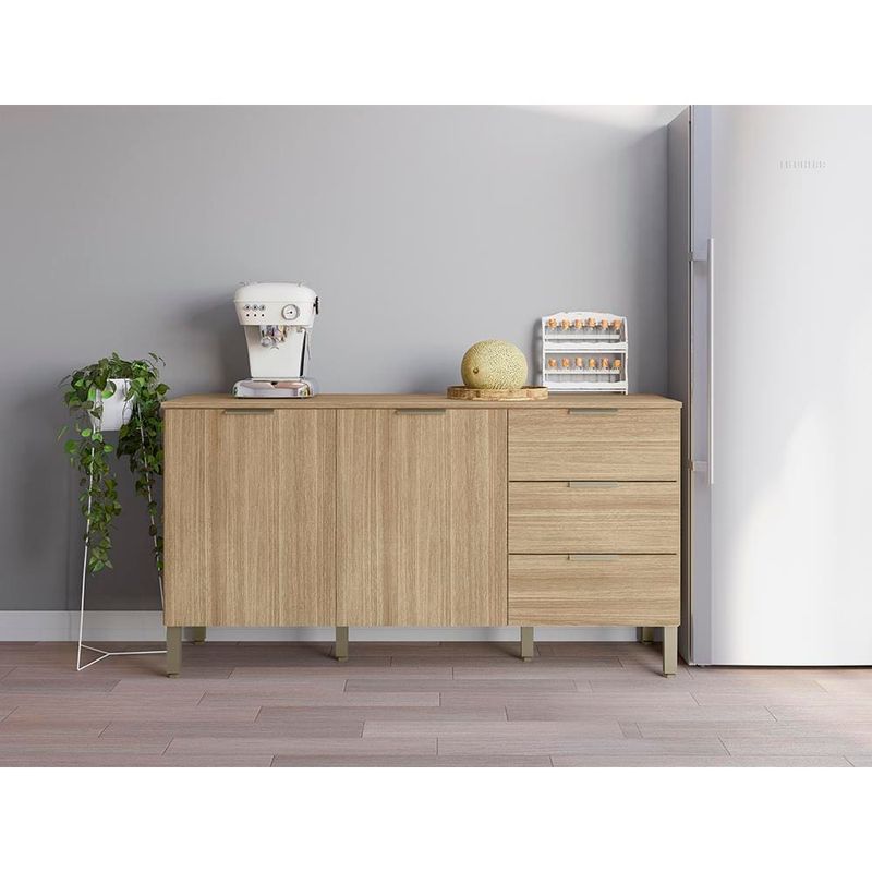 Balcão Kits Paraná 1600 Glam 2 Portas 3 Gavetas Painel Ripado Freijó Vanilla