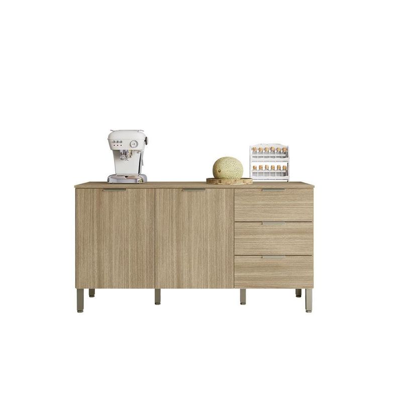 Tenha em sua cozinha o Balcão Kits Paraná 1600 Glam 2 Portas 3 Gavetas Painel Ripado Freijó Vanilla, solução completa para quem precisa de praticidade, sofisticação e acabamento premium.Com 2 portas de bater e 3 gavetas com corrediças telescópicas, ele garante organização e fácil acesso aos utensílios. As corrediças proporcionam deslizamento suave e maior durabilidade, permitindo melhor aproveitamento interno das gavetas com abertura total.Um dos grandes diferenciais está no puxador ergonômico em ABS texturizado, com pintura ouro fosco, que une conforto ao toque e estilo moderno. Já o painel ripado decorativo em Freijó adiciona um toque contemporâneo e exclusivo ao ambiente.Os pés reguláveis garantem alinhamento perfeito ao piso, mesmo em ambientes com pequenas irregularidades, mantendo as portas e gavetas perfeitamente ajustadas e funcionais.3 gavetas com corrediças telescópicas para abertura total e suavePuxadores em ABS com acabamento dourado fosco e toque ergonômicoPainel ripado Freijó decorativo com visual exclusivoPés reguláveis para nivelamento perfeitoProduzido em MDP de 12 e 15 mm, com dobradiças metálicas, prateleira interna e acabamento com pintura UV de alta qualidade, o Balcão Glam é resistente, durável e preparado para o dia a dia da sua cozinha.