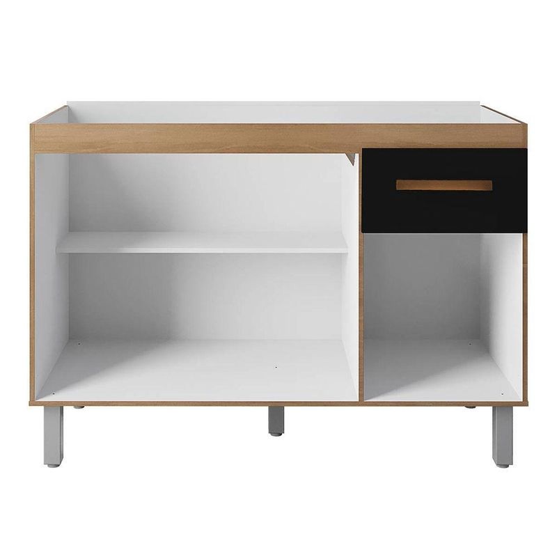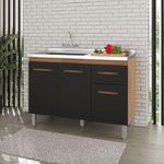 Balcão Lírio 3 Portas 1 Gaveta Cozinha Mb1 120cm Savana PretoNÃO ACOMPANHA PIA!Balcão para Pia de 120cm.Balcão de cozinha com design funcional, ideal para compor ambientes modernos e bem organizados. Possui 3 portas amplas e 1 gaveta lateral, oferecendo espaço adequado para o armazenamento de utensílios, panelas e mantimentos. Conta com puxadores metálicos horizontais que facilitam o uso no dia a dia. A estrutura elevada por pés resistentes permite uma melhor higienização do local.- Altura: 82 cm;- Largura: 118 cm;- Profundidade: 50 cm;Recomendações de limpeza:-Limpar com flanela limpa e seca. Não molhar o móvel e não expor em lugar úmido ou próximo de fontes de calor. Não usar produtos abrasivos.Diferenciais do Balcão Lírio: - Material da Estrutura: fabricado com MDP12/15mm- Detalhes do Balcão: Dobradiças Reforçadas; Corrediças Telescópias; Puxadores Horizontais, finalizados com um excelente acabamento;