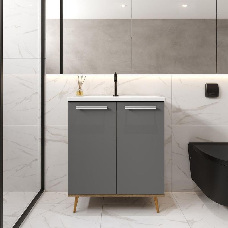 Balcão Para Banheiro Com Pia E 2 Portas Grafite Bertolini Grafite/carvalhoBalcão para Banheiro com Pia 2 Portas da Linha Águas Brasileiras BertoliniPara aqueles que valorizam praticidade, durabilidade, simplicidade e harmonia em seus produtos, a Linha Águas Brasileiras oferece composições projetadas com atenção aos detalhes. Com um design atemporal e moderno, buscamos trazer uma harmonia sofisticada, garantindo a praticidade e a elegância dos espaços. Os módulos foram pensados para atender ao estilo de cada consumidor. Nossos móveis se adaptam e se moldam ao ambiente, assim como as águas de um rio. As corrediças são metálicas, as bordas do móvel são em PVC e as dobradiças são reforçadas e com regulagem. O corpo do móvel e as portas MDP de 15mm com portas basculantes com pistão pneumático recebem cubas e pias em mármore sintético, mais resistente contra manchas, rachaduras e desgastes.CARACTERÍSTICAS:- Marca: Bertolini Móveis- Linha: Águas Brasileiras- Condição do Item: Novo- Material: 100% Madeira- Tipo de Móveis de Cozinha: Balcão para Banheiro- Acabamento: Finish Foil (FF)- Puxadores: Haste em alumínio e ponteira em ABS- Quantidade de Portas: 2- Tipo da Dobradiça da Porta: Metálica- Acompanha Cuba? Sim- Quantidade de Volumes: 2- Dimensões da Embalagem: 29,5 x 46,5 x 76 cm- Peso da Embalagem: 25,7 kgDIMENSÕES DO PRODUTO MONTADO:- Altura: 86,6 cm- Largura: 70 cm- Profundidade: 41 cm- Peso: 23,29 kgINFORMAÇÕES COMPLEMENTARES:- Todos os produtos anunciados pela Bertolini Móveis são novos, acompanham nota fiscal e termo de garantia.- As imagens deste anúncio são meramente ilustrativas e a cor pode variar de acordo com as configurações do seu monitor ou dispositivo móvel assim como a iluminação do ambiente.- Os itens de decoração utilizados nas imagens ambientadas não estão inclusos.- A montagem e instalação do produto é de responsabilidade do consumidor.- Acompanha manual de instruções para montagem.- Os produtos Bertolini Móveis possuem 12 (doze) meses de garantia contra defeitos de fabricação.LIMPEZA E CONSERVAÇÃO:- Limpar somente com pano úmido e não usar produtos abrasivos.DÚVIDAS FREQUENTES:- Como sei o valor do Frete?O Frete é calculado automaticamente tendo por base as dimensões e pesos dos produtos bem como o CEP de destino do consumidor.- Em quanto tempo receberei meu pedido?O prazo de entrega do seu pedido é calculado automaticamente considerando o CEP de destino e as transportadoras disponíveis para sua região. A Bertolini Móveis possui vários transportadoras parceiras e trabalhamos para que seu pedido chegue o mais breve possível.- Posso agendar a entrega?Atualmente não existe a possibilidade de agendamento pois o roteiro de entregas é montado pelas transportadoras parceiras.- Posso rastrear a entrega?Sempre que possível o link de rastreio é gerado pela transportadora parceira e será disponibilizado através de mensagem ou e-mail, algumas transportadoras podem não disponibilizar o rastreamento das entregas.- Vocês tem o serviço de montagem?A Bertolini Móveis não possui serviço de montagem. Todos nossos produtos são enviados com o manual de instruções para realização da montagem.Caso você ainda tenha dúvidas sobre nossos produtos por favor utilize o campo de Perguntas que teremos muito prazer em ajudar. Condição do Item: Novo | Tipo de Móveis de Cozinha: Balcão para Banheiro | Material: Madeira | Linha: Águas Brasileiras | Peso Móvel Montado: 23.2 | Altura Móvel Montado: 86.6 | Largura Móvel Montado: 70 | Profundidade Móvel Montado: 41 | Quantidade de Volumes: 2 | Acabamento: Finish Foil (FF) | Tipo dos Puxadores: Haste em alumínio e ponteira em ABS | Tipo das Dobradiças: Metálica | Requer Montagem?: Sim | Modelo: 8052 | Quantidade de Portas: 2 | Inclui Manual de Montagem: Sim | Inclui Espelho: Não | Marca: Bertolini | batteries_required: Não | Possui Pia ou Cuba?: Pia | bullet_point0: Fabricado em MDP | bullet_point1: Acompanha pia em mármore sintético | Recomendações de Limpeza: Limpar somente com pano úmido, não usar produtos abrasivos. | bullet_point2: Possui 2 Portas | Cor: Carvalho | external_testing_certification: Não se aplica | generic_keyword : balcão, armário banheiro, lavabo | included_components : Manual do usuário | is_fragile: Não | item_depth_width_height : 41 x 86,6 x 70 | model_number: 8052 | number_of_boxes: 2 | number_of_items: 1 | part_number: 8052 Cor: Grafite/Carvalho