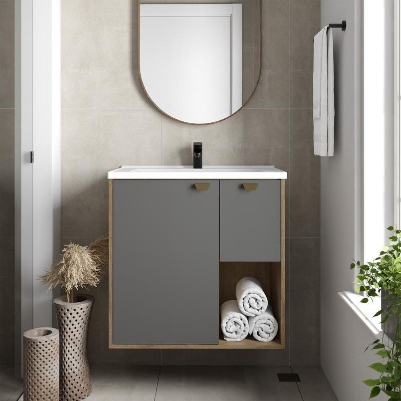 Balcão Para Banheiro Pia 1 Porta 1 Gaveta Grafite Bertolini Grafite/carvalhoBalcão para Banheiro com Pia 1 Porta 1 Gaveta da Linha Águas Brasileiras BertoliniPara aqueles que valorizam praticidade, durabilidade, simplicidade e harmonia em seus produtos, a Linha Águas Brasileiras oferece composições projetadas com atenção aos detalhes. Com um design atemporal e moderno, buscamos trazer uma harmonia sofisticada, garantindo a praticidade e a elegância dos espaços. Os módulos foram pensados para atender ao estilo de cada consumidor. Nossos móveis se adaptam e se moldam ao ambiente, assim como as águas de um rio. As corrediças são metálicas, as bordas do móvel são em PVC e as dobradiças são reforçadas e com regulagem. O corpo do móvel e as portas MDP de 15mm com portas basculantes com pistão pneumático recebem cubas e pias em mármore sintético, mais resistente contra manchas, rachaduras e desgastes.CARACTERÍSTICAS:- Marca: Bertolini Móveis- Linha: Águas Brasileiras- Condição do Item: Novo- Material: 100% Madeira- Tipo de Móveis de Cozinha: Balcão para Banheiro- Acabamento: Finish Foil (FF)- Puxadores: Haste em alumínio e ponteira em ABS- Quantidade de Portas: 1- Tipo da Dobradiça da Porta: Metálica- Quantidade de Gavetas: 1- Tipo da Corrediça da Gaveta: Metálicas- Acompanha Cuba? Sim- Quantidade de Volumes: 2- Dimensões da Embalagem: 29,5 x 46,5 x 76 cm- Peso da Embalagem: 27,6 kgDIMENSÕES DO PRODUTO MONTADO:- Altura: 70 cm- Largura: 70 cm- Profundidade: 41 cm- Peso: 25,08 kgINFORMAÇÕES COMPLEMENTARES:- Todos os produtos anunciados pela Bertolini Móveis são novos, acompanham nota fiscal e termo de garantia.- As imagens deste anúncio são meramente ilustrativas e a cor pode variar de acordo com as configurações do seu monitor ou dispositivo móvel assim como a iluminação do ambiente.- Os itens de decoração utilizados nas imagens ambientadas não estão inclusos.- A montagem e instalação do produto é de responsabilidade do consumidor.- Acompanha manual de instruções para montagem.- Os produtos Bertolini Móveis possuem 12 (doze) meses de garantia contra defeitos de fabricação.LIMPEZA E CONSERVAÇÃO:- Limpar somente com pano úmido e não usar produtos abrasivos.DÚVIDAS FREQUENTES:- Como sei o valor do Frete?O Frete é calculado automaticamente tendo por base as dimensões e pesos dos produtos bem como o CEP de destino do consumidor.- Em quanto tempo receberei meu pedido?O prazo de entrega do seu pedido é calculado automaticamente considerando o CEP de destino e as transportadoras disponíveis para sua região. A Bertolini Móveis possui vários transportadoras parceiras e trabalhamos para que seu pedido chegue o mais breve possível.- Posso agendar a entrega?Atualmente não existe a possibilidade de agendamento pois o roteiro de entregas é montado pelas transportadoras parceiras.- Posso rastrear a entrega?Sempre que possível o link de rastreio é gerado pela transportadora parceira e será disponibilizado através de mensagem ou e-mail, algumas transportadoras podem não disponibilizar o rastreamento das entregas.- Vocês tem o serviço de montagem?A Bertolini Móveis não possui serviço de montagem. Todos nossos produtos são enviados com o manual de instruções para realização da montagem.Caso você ainda tenha dúvidas sobre nossos produtos por favor utilize o campo de Perguntas que teremos muito prazer em ajudar. Condição do Item: Novo | Tipo de Móveis de Cozinha: Balcão para Banheiro | Material: Madeira | Linha: Águas Brasileiras | Peso Móvel Montado: 25 | Altura Móvel Montado: 70 | Largura Móvel Montado: 70 | Profundidade Móvel Montado: 41 | Quantidade de Volumes: 2 | Acabamento: Finish Foil (FF) | Tipo dos Puxadores: Haste em alumínio e ponteira em ABS | Tipo das Dobradiças: Metálica | Tipo das Corrediças: Metálicas | Requer Montagem?: Sim | Quantidade de Portas: 1 | Modelo: 8051 | Quantidade de Gavetas: 1 | Inclui Manual de Montagem: Sim | Inclui Espelho: Não | Marca: Bertolini | Possui Pia ou Cuba?: Pia | batteries_required: Não | Recomendações de Limpeza: Limpar somente com pano úmido, não usar produtos abrasivos. | bullet_point0: Fabricado em MDP | bullet_point1: Acompanha pia em mármore sintético | bullet_point2: Possui uma porta e uma gaveta | Cor: Carvalho | external_testing_certification: Não se aplica | generic_keyword : balcão, armário banheiro, lavabo | included_components : Manual do usuário | is_fragile: Não | item_depth_width_height : 41 x 70 x 70 | model_number: 8051 | number_of_boxes: 2 | number_of_items: 1 | part_number: 8051 Cor: Grafite/Carvalho