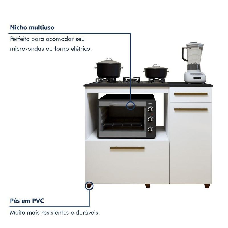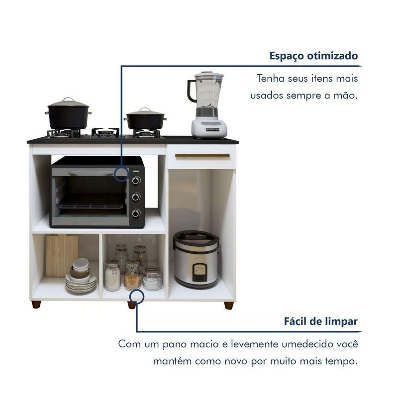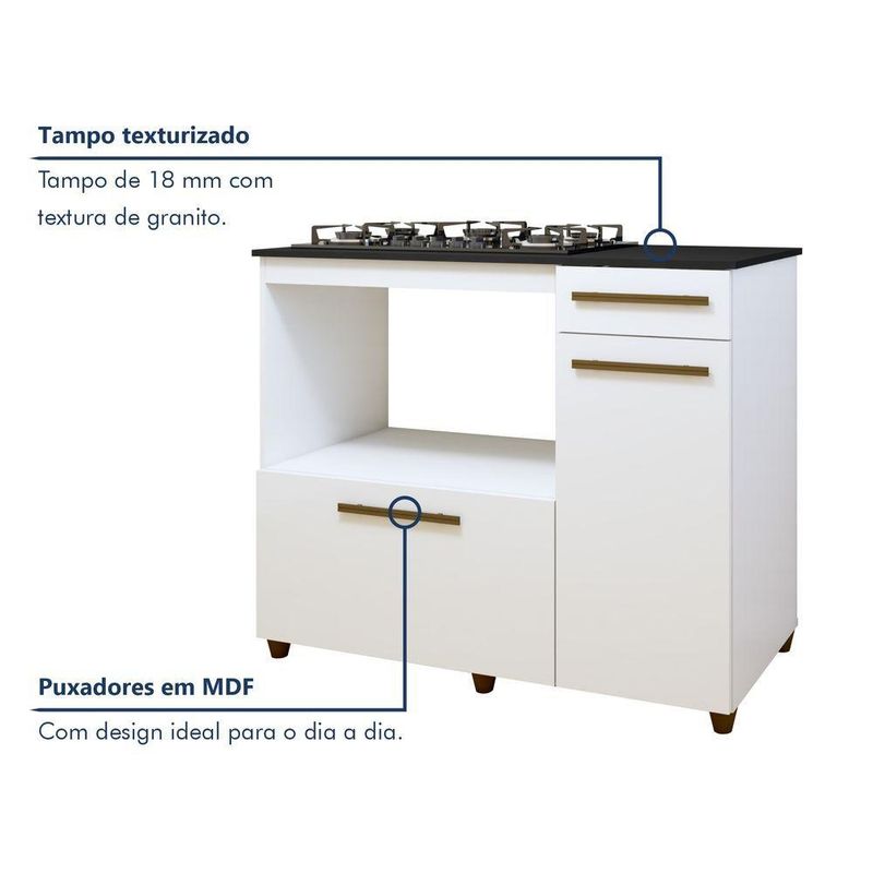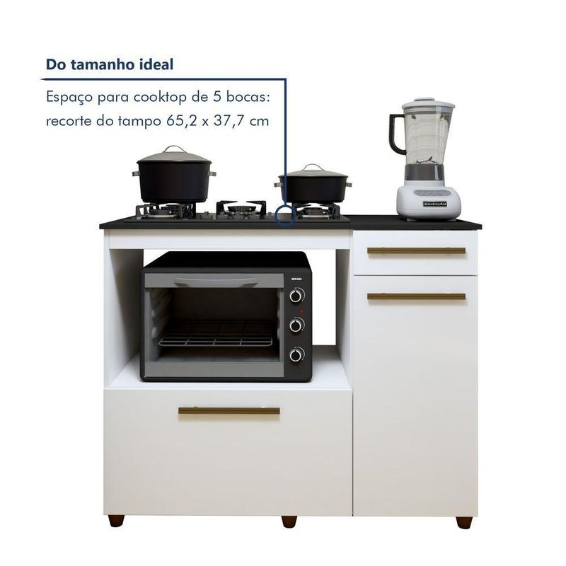 Balcão Para Cooktop 5 Bocas Com 2 Portas E 1 Gaveta Violeta Em Mdp BrancoBalcão para Cooktop 5 Bocas 2 Portas 1 Gaveta Violeta – Lojas CuritibanasOrganização e Praticidade para sua CozinhaO Balcão para Cooktop Violeta das Lojas Curitibanas é a solução ideal para otimizar sua cozinha com estilo. Projetado para acomodar cooktops de 5 bocas, ele oferece amplo espaço interno para organizar utensílios e mantimentos, unindo design versátil e funcionalidade em um único móvel.Com estrutura resistente em MDP e acabamento em pintura de alta qualidade, o balcão conta com duas portas (bater e basculante) e uma gaveta com corrediças metálicas. É a escolha perfeita para quem busca um ambiente moderno, prático e com aproveitamento inteligente de espaço.Principais Benefícios (Diferenciais):Otimização de Espaço: Amplo compartimento interno com prateleira para organizar panelas e utensílios.Praticidade Total: Já possui recorte específico para cooktops de 5 bocas (65,2cm x 37,7cm).Versatilidade: Possui portas do tipo bater e basculante, além de gaveta funcional para talheres.Estrutura Resistente: Fabricado em MDP de alta qualidade, suportando até 70kg de carga total.Design Funcional: Pés de 6cm que facilitam a limpeza e puxadores em MDF com acabamento premium.Ficha Técnica DetalhadaProduto: Balcão para CooktopModelo: Violeta (05 Bocas)Marca: Lojas CuritibanasAltura: 92 cmLargura: 114 cmProfundidade: 49 cmMedida do Recorte para Cooktop: 65,2 cm x 37,7 cmEstrutura: MDPAcabamento: PinturaQuantidade de Portas: 2 (1 Bater / 1 Basculante)Quantidade de Gavetas: 1Quantidade de Prateleiras: 1Material do Puxador: MDFMaterial dos Pés: Plástico (Altura 6 cm)Corrediças e Dobradiças: MetálicasPeso Máximo Suportado: 70 kgGarantia: 90 dias contra defeitos de fabricaçãoRecomendações de Uso, Manutenção e LimpezaPara maior durabilidade, realize a limpeza apenas com flanela limpa e seca. Não utilize produtos abrasivos ou químicos que possam danificar o acabamento do móvel.Montagem e EntregaNão oferecemos serviço de montagem.O produto é entregue desmontado e acompanha manual de instruções.Em caso de dúvidas, recomenda-se a contratação de um profissional qualificado para a instalação do cooktop.ImagensImagens ambientadas são meramente ilustrativas.O Cooktop e objetos decorativos não acompanham o produto.As cores podem sofrer variação conforme a iluminação, monitor ou percepção visual.
