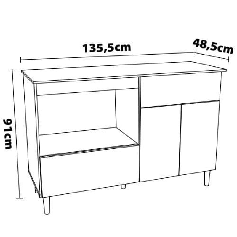Um móvel pra lá de especial, o balcão modelo Cidra produzido pela Politorno possui todos os recursos que você tanto deseja em um produto como esse. Estruturado em MDP de 15mm de espessura, ele conta com corte que possibilita a instalação de um cooktop de 4 bocas (vendido separadamente).Muito bem estruturada e com acabamento semi-brilho, ele ainda dispõe de nicho para micro-ondas, gaveta com corrediças telescópicas, porta de bater e basculante acompanhada de pistão a gás. E mais, para mantê-la muito bem estabilizada, ela dispõe de cinco resistentes pés em plástico. Gostou? Então não perca tempo e adicione um toque a mais de sofisticação na sua sala cozinha com esse belíssimo balcão da Politorno Móveis.