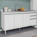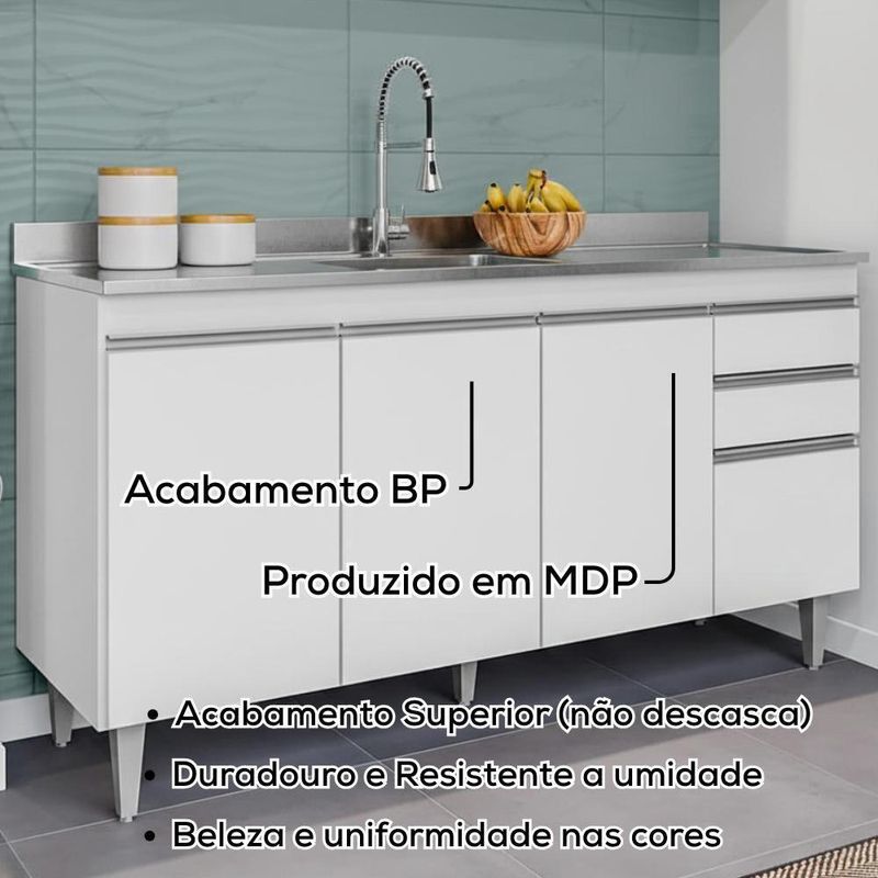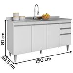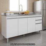 Balcao Para Pia 150 Cm 4 Portas 2 Gavetas Bp Ayla Branco Balcão Para Pia Ayla 150, ideal para compor sua cozinha com funcionalidade e eficiência! Estrutura em MDP 15 mm com acabamento BP. Composto por portas e gavetas com dobradiças e corrediças metálicas, puxadores em perfil de alumínio, além de amplo espaço interno com as prateleiras. Acompanha também pés em plástico com regulagem de altura. TAMPO/PIA NÃO INCLUSO. Produto será entregue em 01 volume.Dimensões:Altura: 81 cmLargura: 150 cmProfundidade: 49,5 cmEspecificações Técnicas:Modelo: AylaMateriais: MDPAmbiente: CozinhasPeso máximo suportado: 40kg distribuídosSistema de montagemManual de montagem incluso/ Kit de acessórios.Montagem, desmontagem e outras instalações serão de responsabilidade do cliente!Recomendação de Limpeza Para a limpeza, utilize um pano seco para retirada do pó.Evite o uso de produtos abrasivos e o contato direto com a umidade.Funcionalidade e estilo que valorizam o ambiente.Importante Saber As imagens são meramente ilustrativas, não acompanham objetos de decoração e eletrônicos.A tonalidade da cor do produto pode variar de acordo a calibração de cores do seu monitor, a iluminação do ambiente ou sua percepção visual.O cliente deve verificar a quantidade de VOLUMES descritos na nota, a situação da embalagem, caso haja algum dano NÃO ASSINE o comprovante de recebimento e RECUSE a mercadoria.Não nos responsabilizamos por subir escadas/elevadores ou pelo transporte por guincho em apartamentos. Eventuais despesas são de responsabilidade do comprador.Confira as dimensões do produto e certifique-se de que passarão normalmente por supostos elevadores, portas, escadas ou corredores de sua residência. Recomendamos que o responsável pelo recebimento confira se os produtos entregues correspondem ao modelo e à quantidade adquirida.Garantia De Fábrica 90 dias para eventuais defeitos de fabricação. Tipo de móveis de cozinha: Balcao | Requer montagem: Sim | Modelo: Ayla | Marca: Maderatto | Tipo da embalagem do vendor: Sem embalagem adicional | Peso da embalagem do vendor: 42000 g | Largura da embalagem do vendor: 49 cm | Comprimento da embalagem do vendor: 151 cm | Altura da embalagem do vendor: 11 cm | Baterias são necessárias?: Nao | Certificação de teste externa: Nao se aplica | Componentes incluídos: Manual do usuario | Dimensões do item: Altura: 11 cm Largura: 49 cm Profundidade; 151 cm | Exige montagem: Sim | Fabricante: Maderatto | Is Fragile: Nao | Número da peça: Nao se aplica | Número de caixas: 1 | Número do modelo: Ayla | Palavras-chave de Pesquisa: Balcao | Peso do item: 42 | Principais Características do Produto 0: MDP | Principais Características do Produto 1: Acabamento BP | Principais Características do Produto 2: Pes de plastico | Quantidade de itens: 1 | Cor: Branco