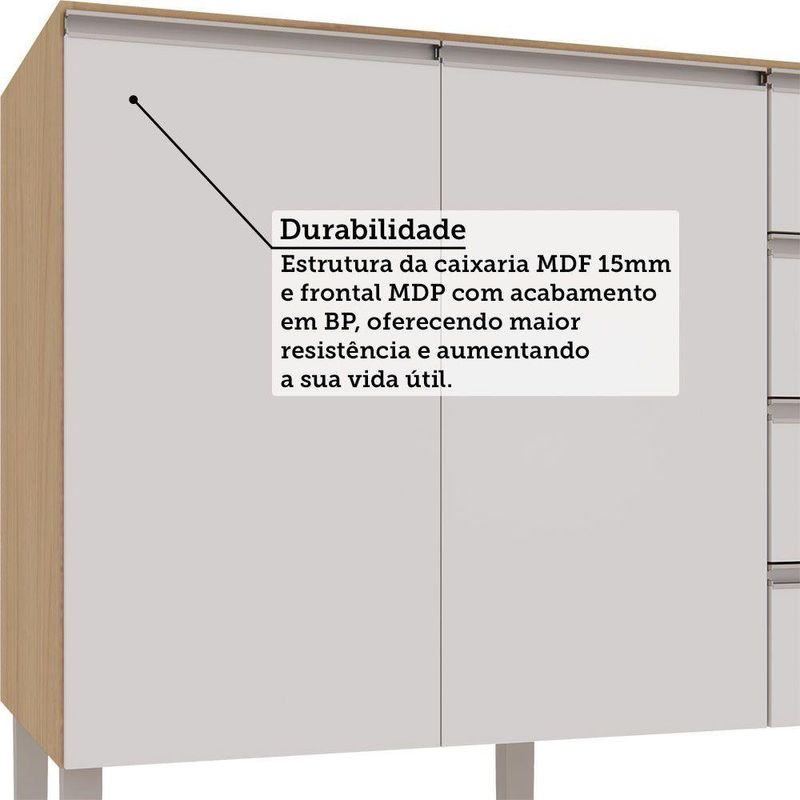 Balcão Para Pia Sem Tampo 2 Portas 4 Gavetas 120cm Essenza L Andorra/brancoBalcao para Pia sem Tampo 2 Portas 4 Gavetas 120cm Essenza Luciane Essenza MoveisO Balcao Essenza chega para redefinir o conceito de elegancia e funcionalidade na sua cozinha, unindo um design contemporaneo a materiais de altissima qualidade. Projetado para quem busca um ambiente organizado e esteticamente impecavel, destacando-se pela robustez de sua estrutura e pelo acabamento minimalista que se adapta perfeitamente aos mais variados projetos de interiores. O grande diferencial deste modelo esta na tecnologia aplicada aos seus componentes internos e externos. Fabricado com caixaria em MDF de alta resistencia e acabamento em BP, oferecendo durabilidade superior, conta com corredicas ocultas, que mantem o visual das gavetas limpo enquanto proporcionam um deslize extremamente fluido e puxadores em aluminio no modelo Gola. E a escolha ideal para quem nao abre mao de tecnologia e beleza em cada detalhe da casa. Caracteristicas: Corpo/Caixaria: MDF Frontais: MDP Acabamento: BP Dobradicas: Ø35mm Slowmotion Corredicas: Invisivel Puxadores: Aluminio Gola Pes: P S Portas: 2 Prateleiras: 1 Gavetas: 4 Dimensoes do produto: Altura: 87,5 cm Largura: 120 cm Profundidade: 57 cm Peso: 49,5 kg Garantia 3 meses direto do fabricante. Informacoes complementares: Fique de olho: siga sempre as orientacoes do fabricante e utilize seu produto de acordo com o manual. A empresa nao se responsabiliza pelo mau uso do produto, o que pode causar perda da garantia. Certifique se que seus dados estejam atualizados, como endereco e um telefone valido. A entrega sera realizada no terreo, sendo assim em predios o deslocamento da mercadoria, subir escadas, elevadores ou transporte por guincho para apartamentos fica sob responsabilidade do comprador. Todas as nossas entregas sao realizadas em horario comercial, nao sendo possivel fazer agendamento, sugerimos acompanhar o rastreio do pedido e ter alguem para receber no endereco indicado. Nao nos encarregamos por montagens, desmontagens e outras instalacoes, serao de responsabilidade do comprador.
