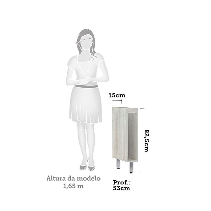 Balcão De Cozinha Sem Tampo 15cm 1 Porta Lis Luciane Móveis Legno Crema Com Verde JadeBalcão de Cozinha sem Tampo 15cm 1 Porta Lis Luciane Móveis O Balcão de 15cm 1 Porta Lis foi desenvolvido aliando beleza e praticidade na organização de sua cozinha. Conta com 1 porta de abrir, puxador perfil alumínio prata e pés em PS cromado. Perfeito para sua cozinha. Características: Corpo/Caixaria: MDP Legno Crema FF. Frontais: MDP - BP. Dobradiças: 0,35 mm Slow motion. Puxadores: Perfil Alumínio Prata. Pés: P S Cromado. Portas: 1 Dimensões do produtos: Altura: 82,5 cm Largura: 15 cm Profundidade: 53 cm Peso: 11,3 kg Garantia de 3 meses direto do fabricante Informações complementares: Fique de olho: siga sempre as orientações do fabricante e utilize seu produto de acordo com o manual. A empresa não se responsabiliza pelo mau uso do produto, o que pode causar perda da garantia.#8239; Certifique se que seus dados estejam atualizados, como endereço e um telefone válido. A entrega será realizada no térreo, sendo assim em prédios o deslocamento da mercadoria, subir escadas, elevadores ou transporte por guincho para apartamentos fica sob responsabilidade do comprador. Todas as nossas entregas são realizadas em horário comercial, não sendo possível fazer agendamento, sugerimos acompanhar o rastreio do pedido e ter alguém para receber no endereço indicado. Não nos encarregamos por montagens, desmontagens e outras instalações, serão de responsabilidade do comprador.