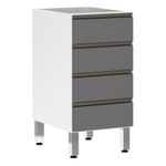 Balcão De Cozinha Sem Tampo 40cm 4 Gavetas Pérola Luciane Móveis Branco Polar Com Cinza PuroBalcão Luciane Pérola tudo que sua cozinha precisa. Amplo espaço para organização de seus utensílios, além de um designer inovador. Características: Corpo/Caixaria: MDP - Branco - F.F. Frontais: MDP - Acabamento - BP. Corrediças Telescópicas: Abertura Total das Gavetas. Puxadores: Alumínio Gola Pés: P S - Cromado. Gavetas: 4 Montagem com Minifix, Parafusos e cavilhas. Itens incluso: manual de montagem, ferragens e acessórios para montagem Dimensões: Altura: 82,5 cm Largura: 40 cm Profundidade: 53 cm Peso: 22,3 kg Garantia do Fornecedor: 3 Informações complementares: Fique de olho: siga sempre as orientações do fabricante e utilize seu produto de acordo com o manual. A empresa não se responsabiliza pelo mau uso do produto, o que pode causar perda da garantia.#8239; Certifique se que seus dados estejam atualizados, como endereço e um telefone válido. A entrega será realizada no térreo, sendo assim em prédios o deslocamento da mercadoria, subir escadas, elevadores ou transporte por guincho para apartamentos fica sob responsabilidade do comprador. Todas as nossas entregas são realizadas em horário comercial, não sendo possível fazer agendamento, sugerimos acompanhar o rastreio do pedido e ter alguém para receber no endereço indicado. Não nos encarregamos por montagens, desmontagens e outras instalações, serão de responsabilidade do comprador.