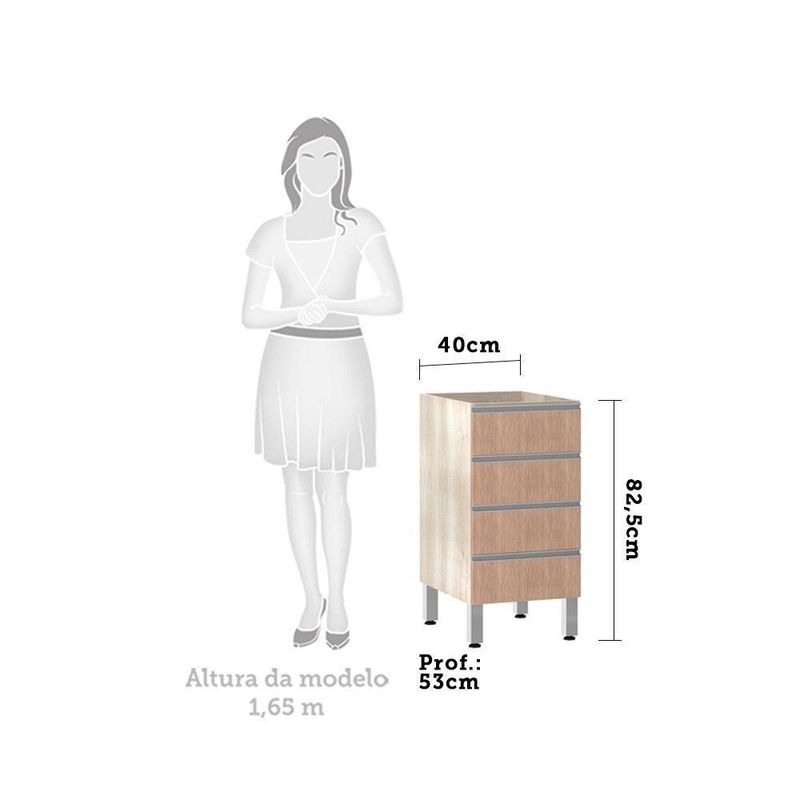 Balcão De Cozinha Sem Tampo 40cm 4 Gavetas Lis Luciane Móveis Legno Crema Com CumaruBalcão Luciane Lis perfeito para sua cozinha. Características: Corpo/Caixaria: MDP Legno Crema FF. Frontais: MDP - BP. Dobradiças: Ø35mm. Puxadores: Alumínio Gola - Prata. Pés: P S - Cromado. Gavetas: 4 Itens inclusos: Manual de montagem, ferragens e acessórios. Montagem com cavilhas e parafusos. Dimensões do produto: Altura: 82,5 cm Largura: 40 cm Profundidade: 53 cm Peso: 20,4 kg Garantia de 3 meses direto do fabricante. Informações complementares: Fique de olho: siga sempre as orientações do fabricante e utilize seu produto de acordo com o manual. A empresa não se responsabiliza pelo mau uso do produto, o que pode causar perda da garantia.#8239; Certifique se que seus dados estejam atualizados, como endereço e um telefone válido. A entrega será realizada no térreo, sendo assim em prédios o deslocamento da mercadoria, subir escadas, elevadores ou transporte por guincho para apartamentos fica sob responsabilidade do comprador. Todas as nossas entregas são realizadas em horário comercial, não sendo possível fazer agendamento, sugerimos acompanhar o rastreio do pedido e ter alguém para receber no endereço indicado. Não nos encarregamos por montagens, desmontagens e outras instalações, serão de responsabilidade do comprador.