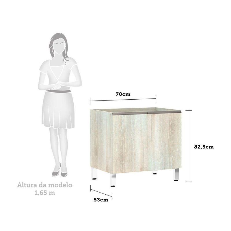 Balcão De Cozinha Sem Tampo 70cm 2 Portas Luci Luciane Móveis Legno CremaBalcão Luciane Luci perfeito para sua cozinha. Características: Corpo/Caixaria: MDP Legno Crema FF. Frontais: MDP - BP. Dobradiças: Ø35 mm. Puxadores: Alumínio Gola Champagne. Pés: P S - Cromado. Prateleiras:1 Portas:2 Itens inclusos: Manual de montagem, ferragens e acessórios. Dimensões do produto: Altura: 82,5 cm Largura: 70 cm Profundidade: 53 cm Peso: 21 kg Garantia de 3 meses direto do fabricante. Informações complementares: Fique de olho: siga sempre as orientações do fabricante e utilize seu produto de acordo com o manual. A empresa não se responsabiliza pelo mau uso do produto, o que pode causar perda da garantia.#8239; Certifique se que seus dados estejam atualizados, como endereço e um telefone válido. A entrega será realizada no térreo, sendo assim em prédios o deslocamento da mercadoria, subir escadas, elevadores ou transporte por guincho para apartamentos fica sob responsabilidade do comprador. Todas as nossas entregas são realizadas em horário comercial, não sendo possível fazer agendamento, sugerimos acompanhar o rastreio do pedido e ter alguém para receber no endereço indicado. Não nos encarregamos por montagens, desmontagens e outras instalações, serão de responsabilidade do comprador.