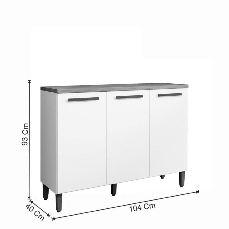 Balcão Vega Arte Móveis 03 Portas BrancoO Balcão Vega se adapta com perfeição em diversos ambientes, trazendo mais beleza, comodidade e qualidade. Possui 3 portas, 3 prateleiras internas e pés reguláveis, tudo isso para garantir mais organização dos seus utensílios e trazer mais facilidade no seu dia a dia.Especificações do Produto Montado:Altura: 93 cmLargura: 104 cmProfundidade: 40 cmPeso: 31KgGarantia: 3 mesesMaterial da estrutura: MDF 18mmPossui Tampo: SimNúmero de Portas: 03Número de Prateleiras: 03Rodizio incluso: NãoPossui Pés: SimAltura dos Pés: 14 cmPés Regulaveis: Sim.Observações:Não oferecemos serviço de montagem, mas todos os produtos possuem manual de montagem com o passo a passo. Recomendamos contratar um profissional de montagem. Pode existir alguma diferença de tonalidade entre a foto e o produto, devido ao tratamento de imagens e à calibração de cores do monitor.