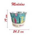 Balde De Gelo Para Cerveja Estampado Em Metal Galvanizado Com Abridor 4,8 Litros - O balde de gelo é ideal para manter a temperatura certa por muito mais tempo e serve tanto pra gelar bebidas mais finas, como espumantes e vinhos ou até mesmo latas, garrafas de cerveja e refrigerante. A maior vantagem do balde de gelo é na hora de servir, já que os convidados não precisam se levantar o tempo todo pra pegar mais bebida gelada, né? Além disso, nem precisa trocar o gelo toda hora. Se divirta sem preocupação, dando um up em sua decoração no momento especial de seus eventos, festas e diversão com os amigos. E aposto que seus convidados iram amar!! Na alça possui Abridor para garrafas. Descrição do produto: - Material: Metal galvanizado e Tinta a Base de Resina Epoxi - Uso: Gelar e manter a temperatura por mais tempo de suas bebidas, dando um toque especial na sua decoração. Dimensões aproximadas: • Altura: 19cm • Diâmetro Boca: 24,5cm • Capacidade: 4,8 Litros Características Gerais do Produto: • Material: Metal Garantia: • Garantia do site - 1 Mês