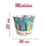 Balde De Gelo Para Cerveja Estampado Em Metal Galvanizado Com Abridor 7,6 Litros - O balde de gelo é ideal para manter a temperatura certa por muito mais tempo e serve tanto pra gelar bebidas mais finas, como espumantes e vinhos ou até mesmo latas, garrafas de cerveja e refrigerante. A maior vantagem do balde de gelo é na hora de servir, já que os convidados não precisam se levantar o tempo todo pra pegar mais bebida gelada, né? Além disso, nem precisa trocar o gelo toda hora. Se divirta sem preocupação, dando um up em sua decoração no momento especial de seus eventos, festas e diversão com os amigos. E aposto que seus convidados iram amar!! Na alça possui Abridor para garrafas. Descrição do produto: - Material: Metal galvanizado e Tinta a Base de Resina Epoxi - Uso: Gelar e manter a temperatura por mais tempo de suas bebidas, dando um toque especial na sua decoração. Dimensões aproximadas: • Altura: 23cm • Diâmetro Boca: 26cm • Capacidade: 7,6 Litros Características Gerais do Produto: • Material: Metal Garantia: • Garantia do site - 1 Mês