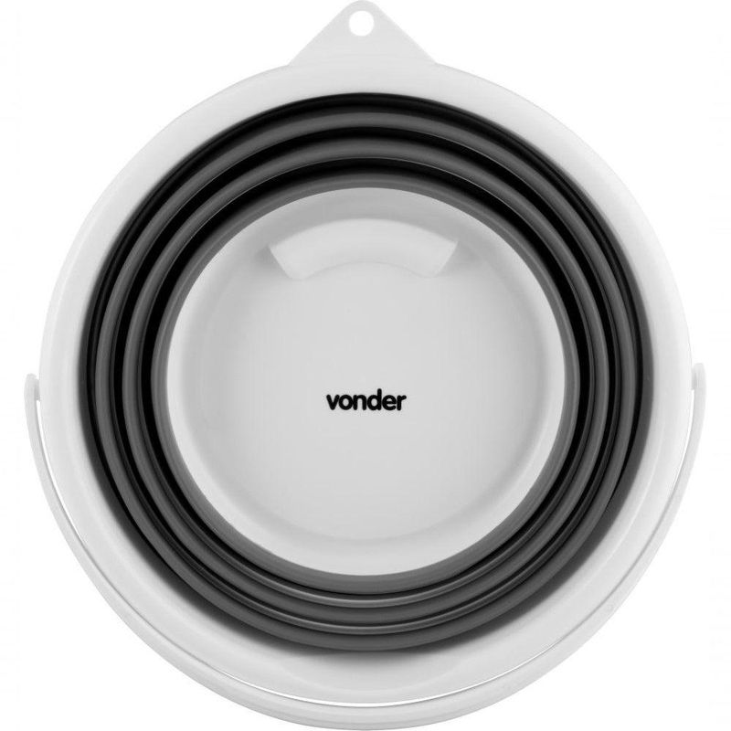 Balde Dobrável 10 Litros VonderMarca: VonderCódigo: 6358010000Conteúdo da embalagem1 Balde dobrável.Destaques e diferenciais:Possui design moderno e compacto, proporcionando melhor aproveitamento de espaço para guardá-lo após o uso.Aplicações e dicas de uso:Indicado para uso doméstico. Para expandir, pressione o fundo até obter o formato completo.Material do balde: Polipropileno e borracha termoplástica Material da alça: Plástico Cor do balde: Cinza e branco Capacidade do balde: 10 litros Dimensões: Aberto: Ø315 mm x 255 mm; Fechado: Ø315 mm x 50 mm Massa aproximada (peso) (kg): 0,56 kgGarantia - E (CDC):Garantia legal: 90 dias NA