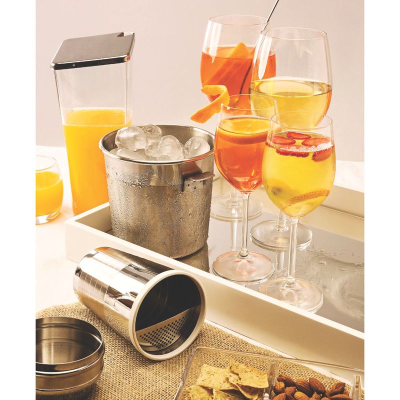 Balde para Gelo Tramontina em Aço Inox 14 cm. Produzido totalmente em aço inox de alta qualidade, é resistente, higiênico e não solta resíduos, mantendo alimentos e bebidas sempre saudáveis. Possui design moderno com acabamento fosco e borda em brilho, que proporciona elegância e praticidade em qualquer ocasião. Seu tamanho compacto é ideal para uso em bufês, festas e eventos, garantindo beleza e funcionalidade. Além disso, é fácil de limpar e pode ser lavado diariamente na máquina de lavar louças sem perder suas características originais, preservando a durabilidade e a aparência do material.