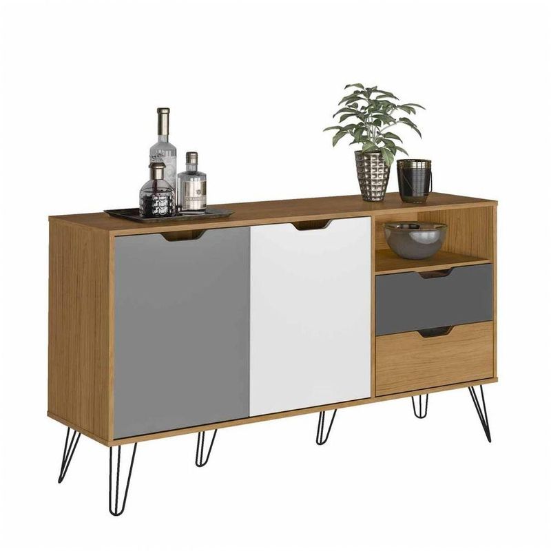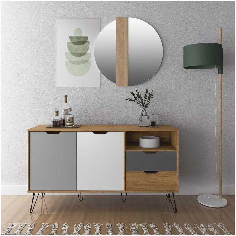 Bancada Buffet Estocolmo Carvalho/grafite/branco/prata 2 Portas 2 Gavetas Usinadas 6 Pés Em Metal - ArtelyBancada Buffet Estocolmo Carvalho/Grafite/Branco/Prata 2 Portas 2 Gavetas Usinadas 6 Pés em Metal - ArtelyQue tal valorizar a decoração de sua casa? Com o Buffet Estocolmo o ambiente fica mais estiloso e sofisticado. Possui 2 portas de abrir e 2 gavetas com corrediças metálicas e com abertura usinadas. Possui 6 pés de metal. Com pintura UV texturizada, sua manutenção fica muito mais fácil. Você não vai ficar de fora né?Especificações Técnicas:Cor:Carvalho/Grafite/Branco/PrataGarantia: 3 Meses garantia fabricante contra defeito de fabricaçãoConteúdo da Embalagem: 1 Bancada, Kit Ferragem e Manual de MontagemModelo: 004385Tamanho Montado: 77 cm x 39 cm x 140 cm - Altura x Largura x ComprimentoProduto Montado: NãoNecessita Montagem? SimPeso: 27 KgSuporta até: 5 kgMaterial Principal: MDP 15mmAcabamento: Pintura Uv TexturizadaPossui Porta: 2 dobradiças metalPossui Gavetas: 2 com abertura usinadaPossui Nichos:1Possui Prateleira: 1Possui Pés: 6 metálicosRecomendações de Uso, Manutenção e Limpeza:Nunca utilize álcool ou materiais abrasivos para limpeza.Informações importantes:• Fotos meramente ilustrativa. Os objetos que ambientam as fotos não acompanham o produto.• As cores do produto podem variar de acordo com o monitor, a iluminação do ambiente ou sua percepção visual.• A compra do produto não acompanha montagem/desmontagem.• Montagens, desmontagens e instalações são responsabilidades do cliente. Estes serviços não estão inclusos no valor do produto. Para evitar imprevistos na sua entrega, confira as dimensões do produto no momento da compra e certifique-se de que ele passará por elevadores, portas, escadas e corredores, já que nossa entrega não inclui a subida de lances de escada ou o içamento de produtos.• Verifique a complexidade antes de decidir montar sozinho, orientamos que este produto seja montado por um profissional de sua confiança, após a sua entrega.• Todas as instruções, manuais e peças necessárias para a montagem são fornecidos junto com o produto, não nos responsabilizamos pela instalação/montagem.• Fornecemos somente assistências, por defeitos de fábrica.
