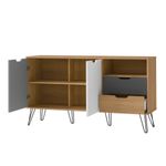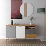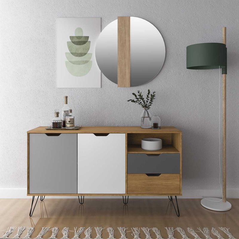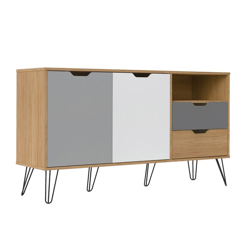 Bancada Buffet Estocolmo Carvalho/Grafite/Branco/Prata 2 Portas 2 Gavetas Usinadas 6 Pés em Metal - Artely Que tal valorizar a decoração de sua casa? Com o Buffet Estocolmo o ambiente fica mais estiloso e sofisticado. Possui 2 portas de abrir e 2 gavetas com corrediças metálicas e com abertura usinadas. Possui 6 pés de metal. Com pintura UV texturizada, sua manutenção fica muito mais fácil. Você não vai ficar de fora né? Especificações Técnicas: Cor: Carvalho/Grafite/Branco/Prata Garantia: 3 Meses garantia fabricante contra defeito de fabricação Conteúdo da Embalagem: 1 Bancada, Kit Ferragem e Manual de Montagem Modelo: 004385 Tamanho Montado: 77 cm x 39 cm x 140 cm - Altura x Largura x Comprimento Produto Montado: Não Necessita Montagem? Sim Peso: 27 Kg Suporta até: 5 kg Material Principal: MDP 15mm Acabamento: Pintura Uv Texturizada Possui Porta: 2 dobradiças metal Possui Gavetas: 2 com abertura usinada Possui Nichos: 1 Possui Prateleira: 1 Possui Pés: 6 metálicos Recomendações de Uso, Manutenção e Limpeza: Nunca utilize álcool ou materiais abrasivos para limpeza. Informações importantes: • Fotos meramente ilustrativa. Os objetos que ambientam as fotos não acompanham o produto. • As cores do produto podem variar de acordo com o monitor, a iluminação do ambiente ou sua percepção visual. • A compra do produto não acompanha montagem/desmontagem. • Montagens, desmontagens e instalações são responsabilidades do cliente. Estes serviços não estão inclusos no valor do produto. Para evitar imprevistos na sua entrega, confira as dimensões do produto no momento da compra e certifique-se de que ele passará por elevadores, portas, escadas e corredores, já que nossa entrega não inclui a subida de lances de escada ou o içamento de produtos. • Verifique a complexidade antes de decidir montar sozinho, orientamos que este produto seja montado por um profissional de sua confiança, após a sua entrega. • Todas as instruções, manuais e peças necessárias para a montagem são fornecidos junto com o produto, não nos responsabilizamos pela instalação/montagem. • Fornecemos somente assistências, por defeitos de fábrica.