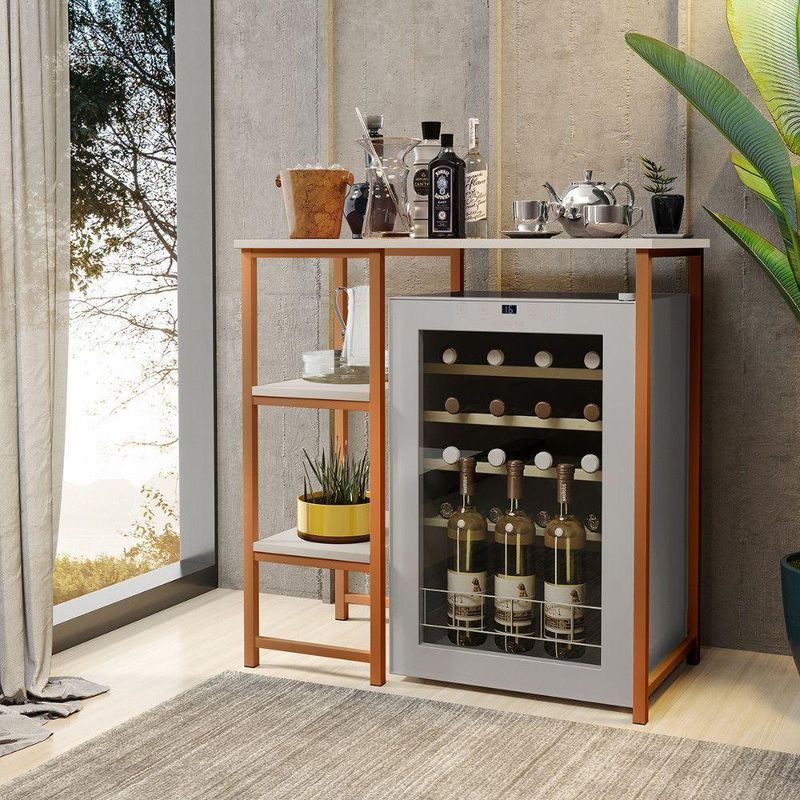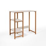 Bancada Gourmet Industrial Klm Store Bronze Com Off WhiteBancada Gourmet IndustrialPratica e versatilEssa bancada oferece elegancia e funcionalidade.Mais espaco para servir refeicoes rapidas ou ate mesmo criar um ambiente social na cozinhaalem disso , e perfeita para armazenar utensilios ou adaptar eletrodomesticos.Um dos lados da bancada possui duas prateleiras podendo harmonizar um eletrodomestico assim como esta na foto ou colocar banquetas garantindo praticidade no seu dia a dia.Caracteristicas Gerais:Marca: KLM MoveisModelo: Gourmet IndustrialTampo: MDF 15 mmFerragens: Aco carbono.Peso Maximo Suportado: 20 kg distribuidos.Produto pratico , facil de montar.E necessario que tenha uma parafusadeira para se obter melhor montagem.ATENCAO: Os acompanhamentos de decoracao e itens de eletronicos sao meramente ilustrativos.Conteudo da Embalagem:01 Bancada Gourmet IndustrialMEDIDAS DO PRODUTO MONTADO:Altura: 92 cmLargura: 90 cmProfundidade : 45 cmPeso: 9 kgGarantia do Fornecedor: 3 Meses