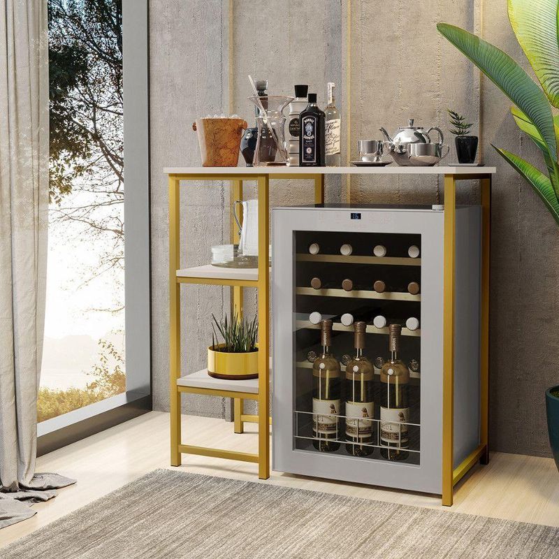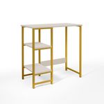 Bancada Gourmet Industrial Klm Store Dourado/off WhiteBancada Gourmet IndustrialPratica e versatilEssa bancada oferece elegancia e funcionalidade.Mais espaco para servir refeicoes rapidas ou ate mesmo criar um ambiente social na cozinhaalem disso , e perfeita para armazenar utensilios ou adaptar eletrodomesticos.Um dos lados da bancada possui duas prateleiras podendo harmonizar um eletrodomestico assim como esta na foto ou colocar banquetas garantindo praticidade no seu dia a dia.Caracteristicas Gerais:Marca: KLM MoveisModelo: Gourmet IndustrialTampo: MDF 15 mmFerragens: Aco carbono.Peso Maximo Suportado: 20 kg distribuidos.Produto pratico , facil de montar.E necessario que tenha uma parafusadeira para se obter melhor montagem.ATENCAO: Os acompanhamentos de decoracao e itens de eletronicos sao meramente ilustrativos.Conteudo da Embalagem:01 Bancada Gourmet IndustrialMEDIDAS DO PRODUTO MONTADO:Altura: 92 cmLargura: 90 cmProfundidade : 45 cmPeso: 9 kgGarantia do Fornecedor: 3 Meses