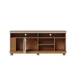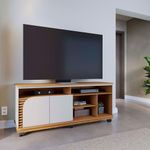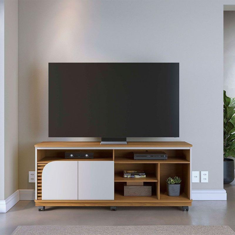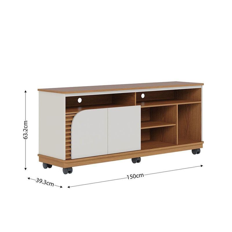 Bancada Tv De 65'' 2 Portas Ewa E Rodízio 150cm C04 - D'rossi Amendoa E Verde PistacheO Rack Bancada Ewa 1.5 é a combinação perfeita de elegância e funcionalidade, ideal para transformar sua sala de estar em um ambiente moderno e aconchegante. Seu design refinado se destaca pelos apliques ripados decorativos, que adicionam um toque de sofisticação, e pela porta de quina assimétrica usinada, que confere um visual exclusivo e contemporâneo. Com um tampo robusto de 25mm e detalhes suspensos, essa bancada oferece não apenas resistência, mas também um acabamento sofisticado. O nicho amplo permite organizar eletrônicos e itens decorativos com praticidade, enquanto as duas portas de giro proporcionam espaço extra para armazenar objetos de forma discreta. Projetado para suportar TVs de até 65 polegadas, o Rack Ewa também conta com 6 rodízios embutidos, facilitando a movimentação do móvel conforme a necessidade do ambiente. Se você busca um móvel funcional, sofisticado e versátil, o Rack Bancada Ewa é a escolha ideal para elevar o estilo da sua sala de estar! Dimensões do Produto: Altura: 63,2 cm Largura: 150 cm Profundidade: 39,3 cm Altura dos Pés/Rodízios: 9 cm Peso: 33 kg Características do Produto: Material da Estrutura: MDP 25mm, 15mm e 12mm, MDF 15mm e HDF 3mm Acabamento: UV Revestimento: Pintura Escala de Brilho: Fosco Revestimento da Borda: Fitas de borda em papel Peso Suportado: 30 kg distribuídos Possui Prateleiras: Sim Quantidade de Prateleiras: 1 Prateleira Possui Portas: Sim Quantidade de Portas: 2 Portas Tipo Porta: Convencional de Giro Material da Dobradiça: Metálica Possui Gavetas: Não possui Possui Nichos: Sim Quantidade de Nichos: 5 Nichos Possui Puxador: Não possui Possui Tampo: Sim, possui Possui Pés: Sim Quantidade de Pés: 6 Rodízios Material dos Pés: Plástico Possui Vidro: Não possui Recomendado para TV: Para TVs até 65 Diferenciais: Design moderno; Porta, tampo e base com cantos curvos; Detalhe ripado. Manual de Montagem: Sim Complexidade da Montagem: Baixo Montagem: Recomendamos que seja feita por um profissional Garantia: 90 dias contra defeito de fabricação Instruções de Limpeza: Utilizar um pano limpo e levemente úmido Quantidade de Volumes 1 Caixa Medida das Embalagens Caixa : 11,4 cm x 41,1 cm x 156,8 cm Entrega: É feita somente até o térreo ou portaria. Não levamos em andares superiores. Confira sempre as medidas das embalagens.