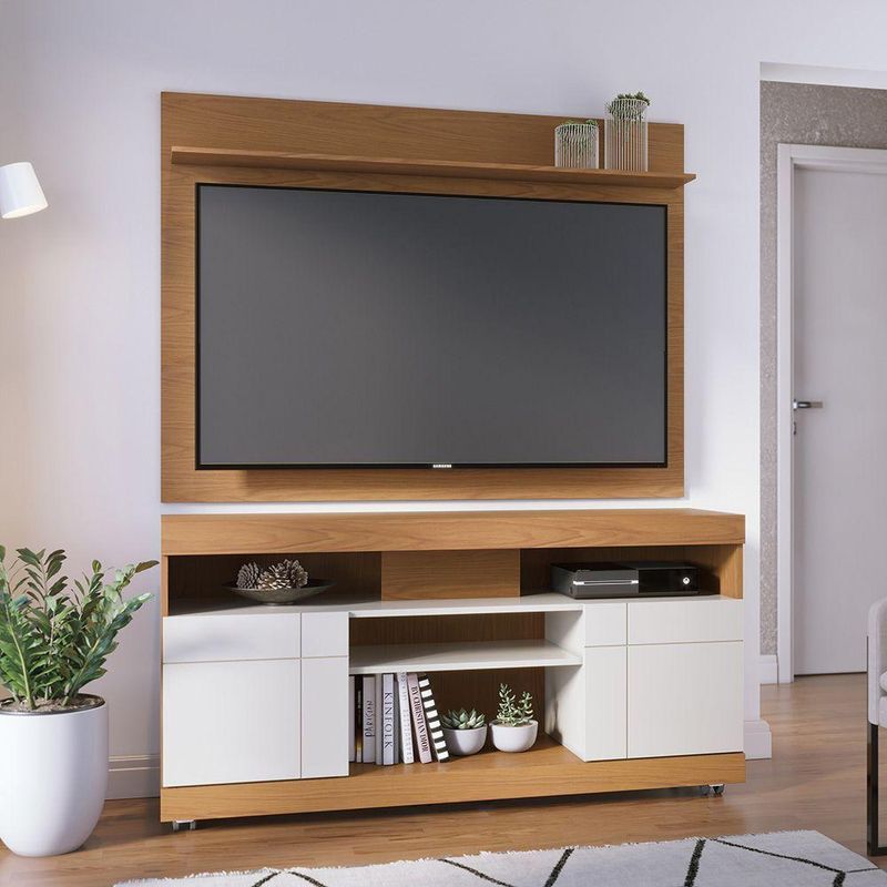 Bancada Yara 136cm 2 Portas De Giro - Ssx Multicoisas Cor Freijó/off WhiteAparador YaraCom design clean, a Bancada Yara é compacta e moderna, seus detalhes em linhas retas deixarão a sua sala de estar linda e funcional. Ideal para ambientes pequenos por trazer praticidade, possui 2 portas de giro com detalhes frisados que acomodam os mais diversos objetos, além de uma prateleira espaçosa para organizar os seus aparelhos eletrônicos. A Bancada Yara suporta TVs de até 47 polegadas e possui rodízios embutidos. Experimente compor este Rack com o Painel Maia.Especificações do ProdutoMaterial do produto: MDP 15mm, HDF 3mm;Sistema de montagem: Kit de ferragens e manual de montagem;Instruções de Limpeza: Limpar utilizando apenas um pano umedecido com água, nunca utilizar abrasivos ou esponjas de aço.DimensõesLargura: 136 cmAltura: 68,9 cmProfundidade: 37,4 cmPeso: 30,9 kg