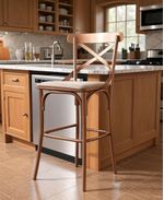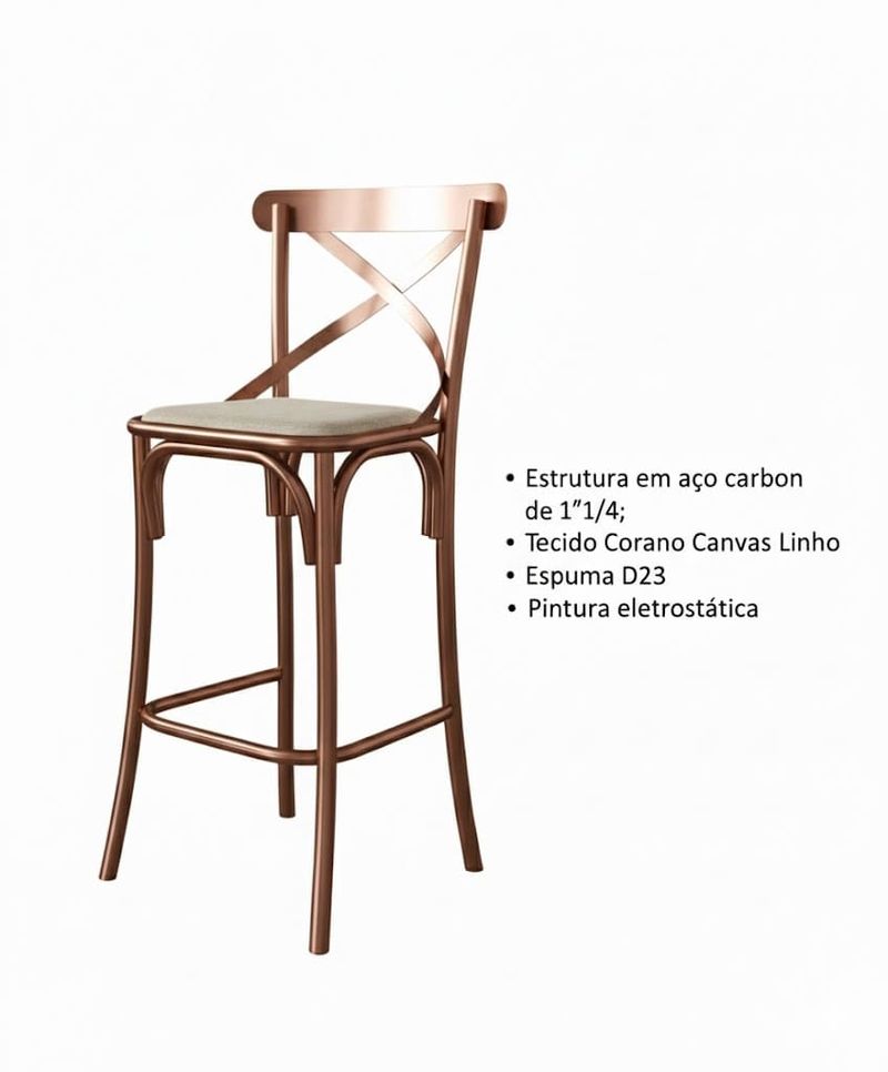 Banqueta Katrina Aço Cobre Assento Bege - Asturias Estilo e Elegância para sua Casa A Banqueta Katrina Aço Cobre Assento Bege da Asturias é o toque contemporâneo que faltava para sua cozinha ou sala de jantar. Seu design elegante, com encosto em formato de "X", agrega estilo e sofisticação ao ambiente. O assento estofado proporciona conforto extra para longas refeições e momentos de convivência, enquanto a estrutura em aço carbono e o apoio para os pés garantem segurança e durabilidade. Perfeita para cozinhas americanas, espaços gourmets, bancadas ou home bars, a Banqueta Katrina eleva a atmosfera do ambiente, tornando-o mais acolhedor e convidativo para receber familiares e amigos com requinte. Suas dimensões ideais permitem acomodá-la em diversos espaços, adaptando-se com facilidade à decoração existente. Diferenciais: Encosto em formato de "X", assento estofado em MDF e Corano, estrutura resistente em aço carbono, pintura epóxi de alta durabilidade, capacidade de peso de até 160kg. Mais sobre o Produto: Ideal para cozinhas integradas, espaços gourmet, bancadas e home bars. Proporciona conforto, segurança e elegância à decoração do ambiente. Dicas de Uso: Combine a Banqueta Katrina com uma mesa alta ou balcão, criando um conjunto harmonioso e funcional para refeições rápidas ou momentos de descontração. Ficha Técnica: Marca: Asturias Altura: 103 cm Largura: 50 cm Profundidade: 55 cm Altura do assento até o chão: 73 cm Material: Aço carbono, MDF, Corano Capacidade de peso: 160kg
