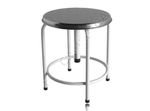 Estrutura de quatro pés com ponteiras em tubos de aço esmaltado com 19,05mm de diâmetro, assento em aço inoxidável com 0,35 mt de diâmetro, com regulagem de altura mínima de 0,42 mt e máxima de 0,62 mt. Sistema de elevação por rosca. Código: FM0132