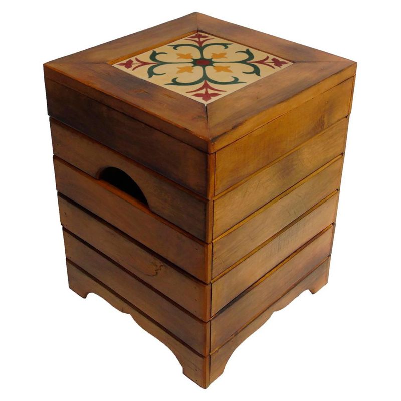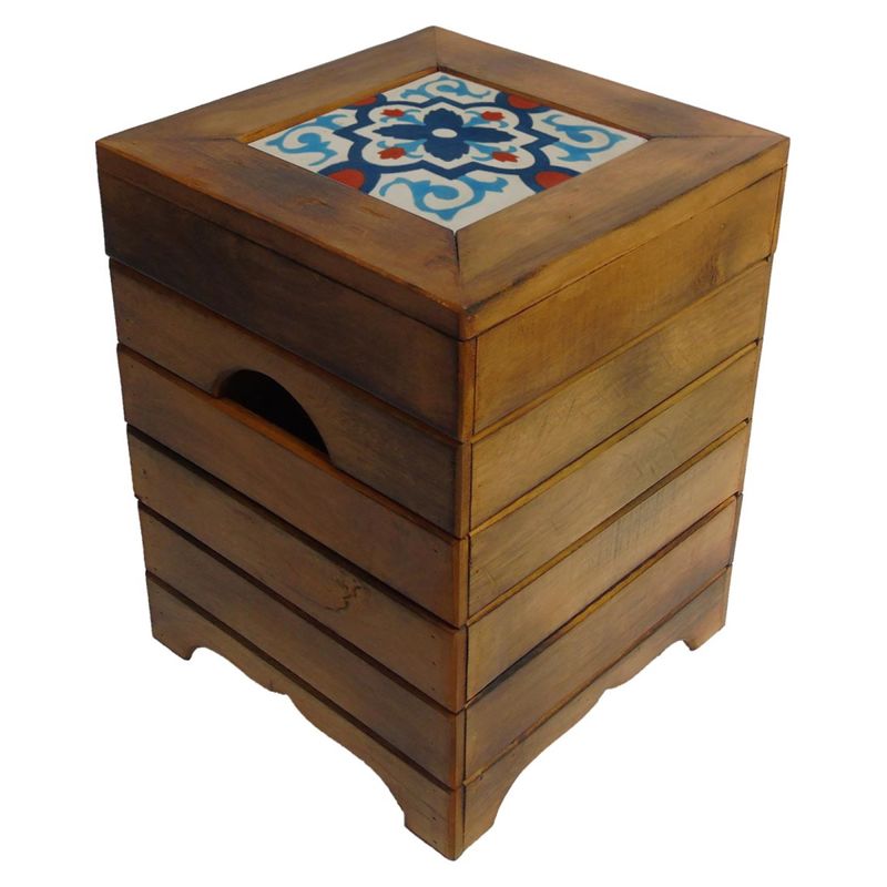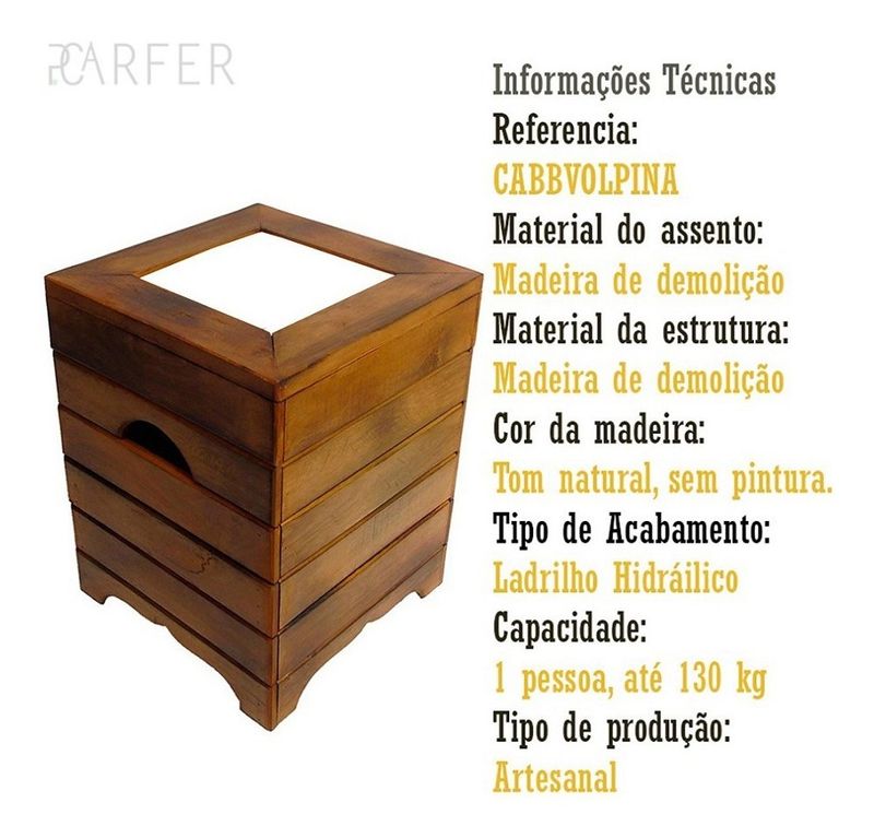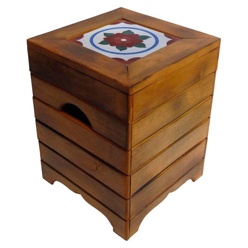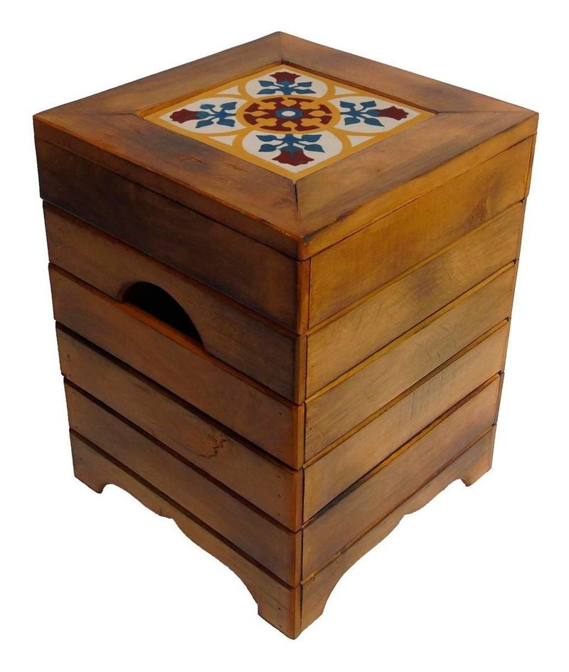 Banco Baú Rústico com Ladrilho Hidráulico: Versatilidade, Charme e Durabilidade para Sua Casa! Desfrute da praticidade, beleza e aconchego do Banco Baú Rústico com Ladrilho Hidráulico, uma peça única e artesanal que irá transformar o seu ambiente. Feito à mão por talentosos artesãos, este banco combina com diversos estilos de decoração e oferece diversas funcionalidades, sendo perfeito para quem busca: Um móvel versátil: pode ser utilizado como banco, mesa de centro, apoio para os pés, mesinha de cabeceira ou até mesmo como baú para guardar objetos. Um toque de charme e personalidade: o design rústico da madeira de demolição e o ladrilho hidráulico artesanal criam um visual único e cheio de personalidade que irá valorizar qualquer ambiente. Um investimento em qualidade: a utilização de materiais de alta qualidade e o cuidado na produção garantem que este banco irá durar por muitos anos, sem perder o seu charme natural. Mais do que apenas um banco: Estilo atemporal: combina com diversos estilos de decoração, desde o moderno até o clássico. Presente original: é um presente ideal para quem aprecia peças únicas e de qualidade. Sustentabilidade: a utilização de madeira de demolição contribui para a preservação do meio ambiente. Detalhes do banco: Material: madeira de demolição e ladrilho hidráulico artesanal Estilo: rústico e vintage Funções: banco, mesa de centro, apoio para os pés, mesinha de cabeceira, baú Dimensões: Peso: 8,170 kg Altura: 45 cm Largura: 34 cm Comprimento: 34 cm Capacidade de peso: 130 kg Produção: artesanal Acabamento: sem pintura na madeira, com ladrilho hidráulico Extras: baú sob o assento Observação: por ser um produto artesanal, a madeira pode apresentar variações na tonalidade, evidenciando a sua autenticidade e charme.