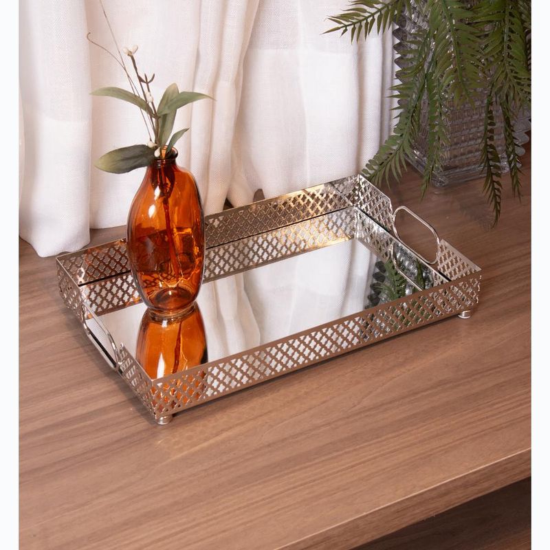 Bandeja Espelho Marbella Wolff 32cm x 20cm Prateada MetalA Bandeja com Espelho Marbella Prateada, da Wolff, combina funcionalidade e requinte em um só produto. Com um design sofisticado, é perfeita para quem deseja organizar e decorar com elegância.A Bandeja com Espelho Marbella Prateada, da Wolff, combina funcionalidade e requinte em um só produto. Com um design sofisticado, é perfeita para quem deseja organizar e decorar com elegância.Beleza RefinadaEstrutura prateada e base espelhada que garantem um visual clássico e moderno ao mesmo tempo.Compacta e VersátilSeu tamanho é ideal para mesas, aparadores e penteadeiras, sem ocupar muito espaço.Qualidade PremiumFabricada com metal resistente e espelho de alta qualidade, unindo durabilidade e estilo.Modo de Usar/LimpezaUsoUtilize para organizar perfumes, acessórios, servir bebidas ou decorar ambientes com um toque sofisticado.LimpezaPasse um pano seco na estrutura metálica e limpe o espelho com um pano macio levemente umedecido em limpa-vidros. Não utilize produtos abrasivos para preservar o acabamento.A Bandeja Marbella Prateada é mais do que um item funcionalé uma peça decorativa que transforma qualquer espaço, deixando-o mais elegante e charmoso.Wolff - Construindo memórias e eternizando momentos.Contém: 1 Bandeja com Espelho Medidas Produto: Altura 5,00cm x Largura 20,00cm x Comprimento 32,00cmPeso: 0,76KgLimpar com flanela branca e seca.