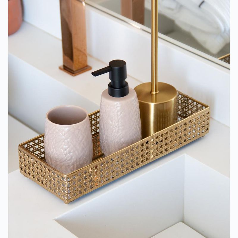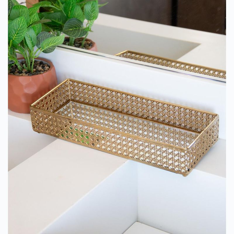 Bandeja Espelho Versalhes Wolff 32cm x 12,5cm Dourada MetalA Bandeja com Espelho Versalhes Dourada da Wolff é a escolha perfeita para quem valoriza sofisticação e funcionalidade. Com um design refinado e acabamento dourado, essa peça transforma qualquer ambiente, trazendo um toque de glamour e elegância.A Bandeja com Espelho Versalhes Dourada da Wolff é a escolha perfeita para quem valoriza sofisticação e funcionalidade. Com um design refinado e acabamento dourado, essa peça transforma qualquer ambiente, trazendo um toque de glamour e elegância.Design EleganteSeu acabamento dourado e o espelho sofisticado elevam a decoração de qualquer espaço, seja em mesas de centro, aparadores ou banheiros.Funcionalidade VersátilIdeal para organizar perfumes, cosméticos, bijuterias, ou como peça decorativa para criar arranjos de flores e velas.Materiais de Alta QualidadeProduzida em metal durável com espelho de alta qualidade, garantindo uma aparência impecável e resistência ao uso diário.Modo de Usar/LimpezaUsoColoque a bandeja em locais de destaque como banheiros, quartos ou salas de estar para um toque de classe e organização.LimpezaUse um pano seco e macio para a superfície metálica e um pano úmido com produto para vidros para limpar o espelho. Evite produtos abrasivos para preservar o brilho e a aparência da bandeja.A Bandeja Versalhes Dourada é a combinação perfeita de beleza e funcionalidade. Adicione um toque de requinte a qualquer ambiente e torne-o um espaço digno de admiração.Wolff - Construindo memórias e eternizando momentos.Contém: 1 Bandeja com EspelhoMedidas Produto: Altura 5,00cm x Largura 12,50cm x Comprimento 32,00cmPeso: 0,55KgLimpar com flanela branca e seca.