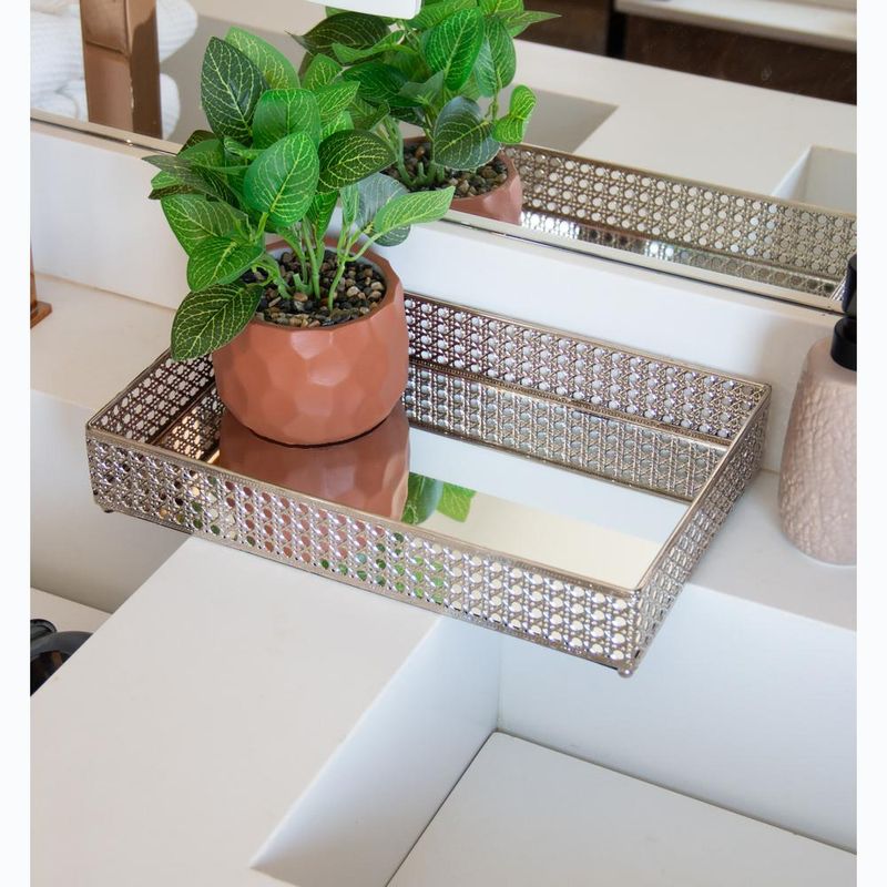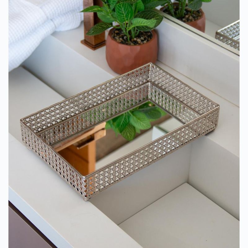 Bandeja Espelho Versalhes Wolff 32cm x 20cm Prateada MetalA Bandeja com Espelho Versalhes Prateada, da Wolff, é um item decorativo que combina luxo e funcionalidade. Ideal para destacar ambientes com um toque de sofisticação.A Bandeja com Espelho Versalhes Prateada, da Wolff, é um item decorativo que combina luxo e funcionalidade. Ideal para destacar ambientes com um toque de sofisticação.Estilo EleganteInspirada no clássico design Versalhes, confere requinte a qualquer espaço.Estrutura RefinadaFabricada em metal prateado, une resistência e beleza.Espelho DecorativoCria um efeito visual sofisticado, valorizando os objetos exibidos.Modo de Usar/LimpezaUsoIdeal para organizar itens como perfumes, velas, joias ou para compor decorações em mesas e aparadores.LimpezaLimpe a estrutura metálica com um pano seco e macio e o espelho com um pano úmido com produto específico para vidros. Não use produtos abrasivos.A Bandeja Versalhes Prateada alia beleza clássica e praticidade, tornando-se um destaque decorativo em qualquer ambiente. Um acessório indispensável para quem valoriza detalhes elegantes.Wolff - Construindo memórias e eternizando momentos.Contém: 1 Bandeja com EspelhoMedidas Produto: Altura 5,00cm x Largura 20,00cm x Comprimento 32,00cmPeso: 0,78KgLimpar com flanela branca e seca.