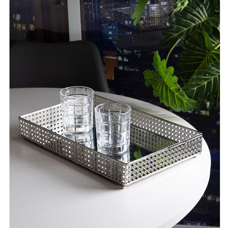 Bandeja Espelho Versalhes Wolff 38cm x 24cm Prateada MetalA Bandeja com Espelho Versalhes Prateada, da Wolff, é sinônimo de elegância e funcionalidade, sendo perfeita para complementar a decoração de qualquer ambiente com sofisticação.A Bandeja com Espelho Versalhes Prateada, da Wolff, é sinônimo de elegância e funcionalidade, sendo perfeita para complementar a decoração de qualquer ambiente com sofisticação.Design ClássicoInspirada no estilo Versalhes, agrega um toque de luxo atemporal.Acabamento ImpecávelEstrutura em metal prateado que combina durabilidade e requinte.Espelho RefletivoAmplia a percepção do ambiente e destaca os itens exibidos sobre ela.Modo de Usar/LimpezaUsoPerfeita para organizar perfumes, joias ou criar composições decorativas em mesas de centro, penteadeiras ou buffets.LimpezaUse um pano seco e macio para a estrutura metálica e um pano levemente umedecido com produto próprio para vidros no espelho. Evite materiais abrasivos para preservar o acabamento.A Bandeja Versalhes Prateada é a escolha ideal para transformar qualquer ambiente em um espaço cheio de estilo e organização. Sua beleza atemporal e funcionalidade fazem dela um item indispensável na sua decoração.Wolff - Construindo memórias e eternizando momentos.Contém: 1 Bandeja com EspelhoMedidas Produto: Altura 5,00cm x Largura 24,00cm x Comprimento 38,00cmPeso: 1,00KgLimpar com flanela branca e seca.