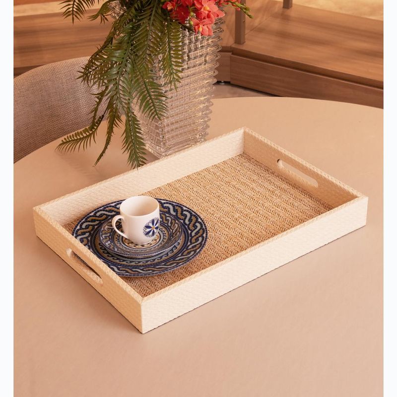 Bandeja Retangular Fundo de Madeira 42 x 30 x 5cm Marrom MDFOrganização e serviço com um design imponente e atemporal. A Bandeja Retangular de 42cm é uma peça robusta e funcional, que serve como uma base elegante para seu bar ou para levar um café completo à mesa.Organização e serviço com um design imponente e atemporal. A Bandeja Retangular de 42cm é uma peça robusta e funcional, que serve como uma base elegante para seu bar ou para levar um café completo à mesa.Design retangular e cleanAs linhas retas e o formato clássico oferecem um visual limpo e organizado, ideal para ambientes modernos e sóbrios.Acabamento sofisticadoA superfície em tom de madeira marrom é uniforme e de alta qualidade, garantindo uma peça de destaque.Espaço para organizar e servirCom 42cm, é excelente para criar um cantinho do bar, organizar itens em um escritório ou servir o café da tarde para a família.Peça de alta versatilidade comercialSeu design neutro e funcional agrada a um público amplo, sendo um item essencial no mix de produtos para casa.WolffA melhor experiência em receber, servir e decorar.Contém: 1 Bandeja RetangularMedidas Produto: Altura 42,00cm x Largura 5,00cm x Comprimento 30,00cmPeso: 1,00KgLavar com detergente neutro, esponja macia e secar imediatamente. Não utilizar outros produtos químicos.
