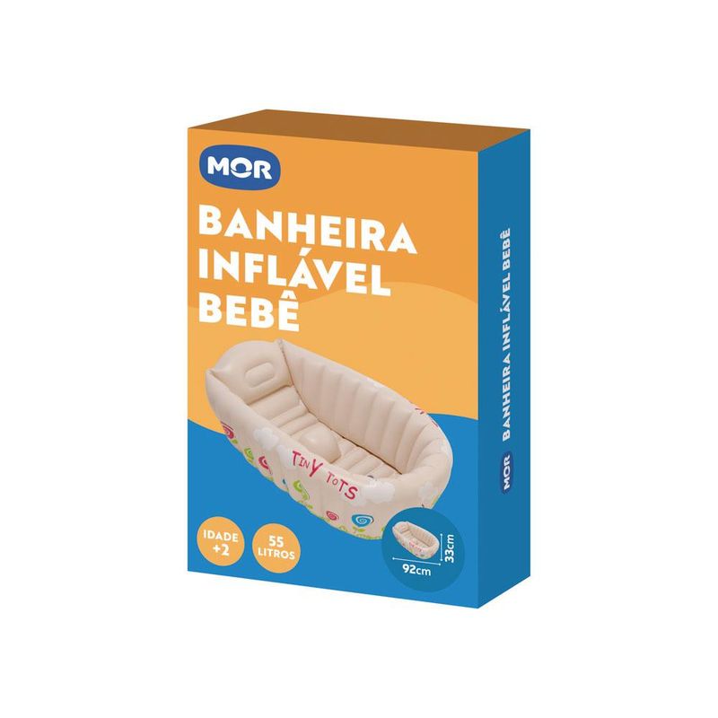 Banheira Bebê Bege Mor A Banheira Bebê oferece todo o conforto para o seu bebê. Com capacidade para até 55 litros de água e medindo 92cm de diâmetro, ela é perfeita para ajudar as mamães a tornar a hora do banho ainda mais gostosa! É excelente para usar aonde você estiver. Produzida em vinil resistente, acompanha quatro câmaras de ar independentes, uma válvula de deságue e kit reparo. É recomendada para crianças maiores de 1 ano. A Banheira permite ver a temperatura ideal da água através de um indicativo interno: quando a água atingir de 32° até 38°, a cor que você verá será Azul, 38° será Bordô e acima de 38° será Vermelho. Tudo isso para o bem-estar do seu pequeno. Há ainda, um gancho para pendurar e facilitar a secagem. Para segurança e comodidade, há um apoio inflável opcional, que evita deslizamentos. Mais uma praticidade Mor para o seu dia a dia! Atenção! Nunca deixe crianças sozinhas perto da água sem supervisão de um adulto. Especificações MATERIAL: PVC FORMATO: Oval IDADE: Até 3 anos COR PREDOMINANTE: Bege CAPACIDADE: 55 litros OBSERVAÇÕES: Os objetos que ambientam as imagens não acompanham o produto! GARANTIA: 90 dias