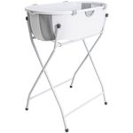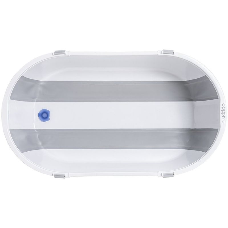 Banheira Dobrável Flap Azul com Suporte - Kiddo banheira dobrável. válvula para escoamento da água. design moderno. fechamento compacto. estrutura plástica. pode ser utilizada desde recém nascido. limite de peso: 40 kg (água + criança) no chão Peso da banheira: 1,5 kgs Acompanha o suporte alto. Medidas: A 25 x L 46 x C 78 Medidas do produto na caixa: A 81 x L 56 x C 21
