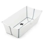 Banheira Flexi XL (Grande) Branca - Stokke Banheira dobrável, flexível e leve tamanho XL. Possui todos os excelentes recursos da nossa versão original, mas com mais espaço. Com espaço suficiente para que os irmãos compartilhem confortavelmente os momentos do banho. O design inteligente economiza espaço, torna fácil de guardar e é conveniente para usar em casa ou quando viajar. Com plug térmico que muda de cor (rosa se tiver muito quente, roxo se estiver boa e preta se estiver muito fria) de acordo com a temperatura da água. Com válvula de escoamento de água e base antiderrapante. O plug térmico não é um termômetro, verificar a temperatura da água antes de colocar o bebê. Lavar à mão com água morna e sabão líquido neutro. Secar ao ar livre ou com pano limpo e seco. É recomendado o uso do suporte para o bebê recém nascido do nascimento até 8 meses que é vendido separadamente. O suporte para a banheira NÃO é um acessório compatível com este tamanho de banheira e é vendido separadamente. Uso recomendado a partir do nascimento até 6 anos ou 21 kg. Contém: 1 banheira XL com plug térmico. O acessório suporte para recém nascido é vendido separadamente. Peso: 1,85 kg Dimensões: Aberta: 80 cm (comp) x 24 cm (altu) x 40 cm (larg). Dobrada: 80 cm (comp) x 24 cm (altu) x 8 cm (larg). Material: PP.
