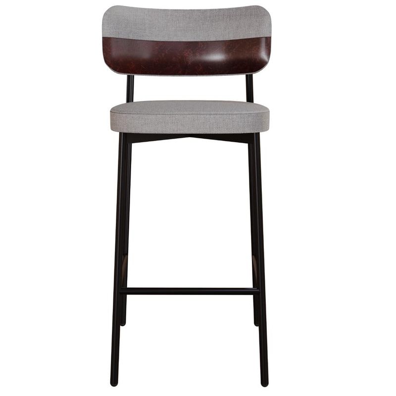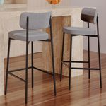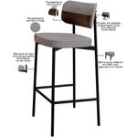 MóveisCozinhaBanquetaBanqueta Alta Bar Cozinha Sala De Jantar Aço Preto Kaira C01 Linho Cinza Courino Café - Lyam Decor
