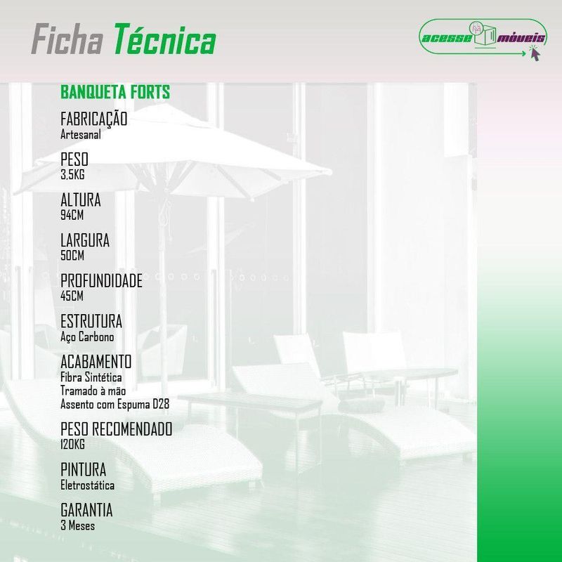 Banqueta Alta Forts Com Encosto Aço Carbono E Fibra Sintética Argila/pretoA Banqueta Forts e a escolha perfeita para quem busca uma combinacao de design elegante, resistencia e versatilidade para complementar qualquer ambiente da casa. Fabricada em aco carbono de alta qualidade e pintada com epoxi, oferece robustez e durabilidade. O acabamento em fibra sintetica com protecao UV (vime/junco) proporciona nao somente beleza, mas tambem protecao contra os raios solares. O assento em espuma D28 proporciona o maximo conforto para suas refeicoes e momentos de lazer. Alem disso, o assento e revestido com courino ou tecido impermeavel, permitindo que voce escolha a opcao que melhor se adapta ao seu estilo. Com seu design contemporaneo e acabamento sofisticado, ela se integra perfeitamente a diversos estilos de decoracao, seja em ambientes residenciais ou comerciais.ESPECIFICACOES TECNICAS: -Material da Estrutura: Aco Carbono; -Material do Enchimento do Assento: Espuma D28; -Material do Encosto: Fibra sintetica; -Acabamento: Protecao UV; -Possui Bracos? Nao; -Possui Regulagem de Altura? Nao; -E Giratoria? Nao; -Quantidade de Lugares: 1 Lugar; -Garantia: 3 Meses; -Necessita de Montagem: Nao; -Instrucoes de Cuidado: Nao utilizar produtos quimicos na fibra e nem na estrutura para limpeza, somente pano macio umedecido com agua e sabao neutro; -Dimensoes do Produto (LarguraXProfundidadeXAltura): 45x43x94cm; -Conteudo da Embalagem: 01 Banqueta.