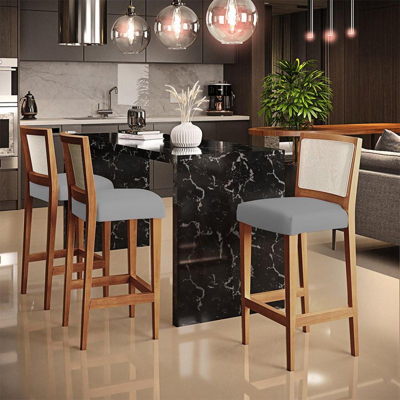 Um clássico que nunca sai de moda! A Banqueta Alta Para Cozinha Sala De Jantar Encosto Em Tela Branco Zion L02 Facto Cinza - Lyam Decor, possui um estilo rustico que faltava para deixar sua casa ainda mais clássica. Seu encosto com o detalhe de tela sintética na cor branca trazem ainda mais estilo e destaque para sua decoração, junto com assento estofado que proporciona horas de conforto. A estrutura e o apoio para os pés, são responsáveis por garantir maior segurança à mesma. Pode ser acomodada em cozinha americana, ambientes integrados, espaços gourmets, bancadas ou em seu home bar, independente do lugar, ela desperta logo de cara o bom gosto e elegância, deixando tudo mais despojado, perfeita para criar um ambiente harmonioso e agradável para receber a família e amigos, sempre com muita receptividade! Características: Estrutura em madeira de reflorestamento de eucalipto vermelho tratado. Revestimento em Facto Cinza de alta qualidade, acabamento fosco. Assento com espuma D-23. Encosto de madeira com tela sintética. Peso suportado: Até 130 kg. Apoio para os pés. Dimensões do produto (L x A x P) 41,5 x 103 x 50 cm Altura do chão ao assento: 75 cm Altura do encosto: 31 cm Largura do encosto: 41,5 cm Profundidade do encosto: 3,5 cm Altura do assento: 10,5 cm Largura do assento: 42,5 cm Profundidade do assento: 38,5 cm Altura do apoio para os pés: 5 cm - Por se tratar de estofado as medidas podem ter uma pequena variação de até 3 cm. - A tonalidade do produto real poderá ter ligeira variação devido o lote de tecidos. Observações importantes: - Produto para uso residencial em ambiente interno, não devendo ficar exposto diretamente ao sol, calor e umidade excessivos. - Pode haver alguma diferença de tonalidade entre a imagem e o produto real, por conta do tratamento de imagens e a calibração de cores do seu monitor. - As imagens são meramente ilustrativas, não acompanham objetos de decoração e eletrônicos. - Ao receber a mercadoria, o cliente deve verificar as condições da embalagem, caso haja alguma avaria não assine o comprovante de recebimento. - Montagem, desmontagem e outras instalações serão de responsabilidade do cliente. Não nos responsabilizamos, no ato da entrega, por subir escadas/elevadores ou pelo transporte por guincho em apartamentos. Eventuais despesas são de responsabilidade do comprador. - Confira as dimensões do produto e certifique-se de que passará normalmente por supostos elevadores, portas, escadas e/ou corredores de sua residência.